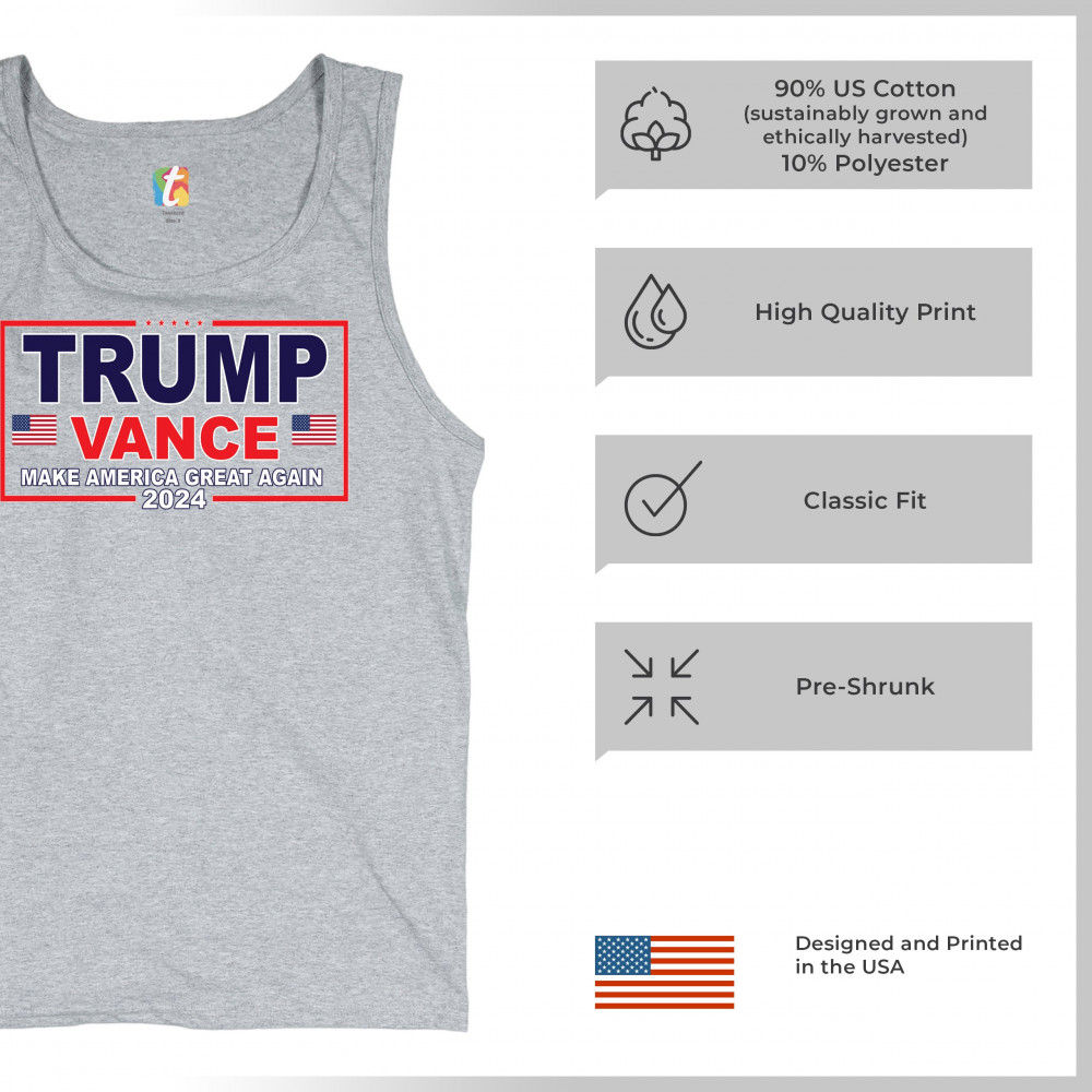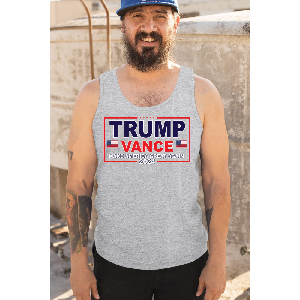 Express your support for the Trump-Vance 2024 campaign with this bold and patriotic design. Highlighting the American flag and the impactful "Make America Great Again" slogan, this design is ideal for those who stand by conservative values. Perfect for attending rallies, political events, or as an everyday statement piece, it symbolizes victory, resilience, and the indomitable American spirit. Show your dedication to the cause and rally fellow supporters with this unique and powerful design. Wear it with pride and make a statement wherever you go.
