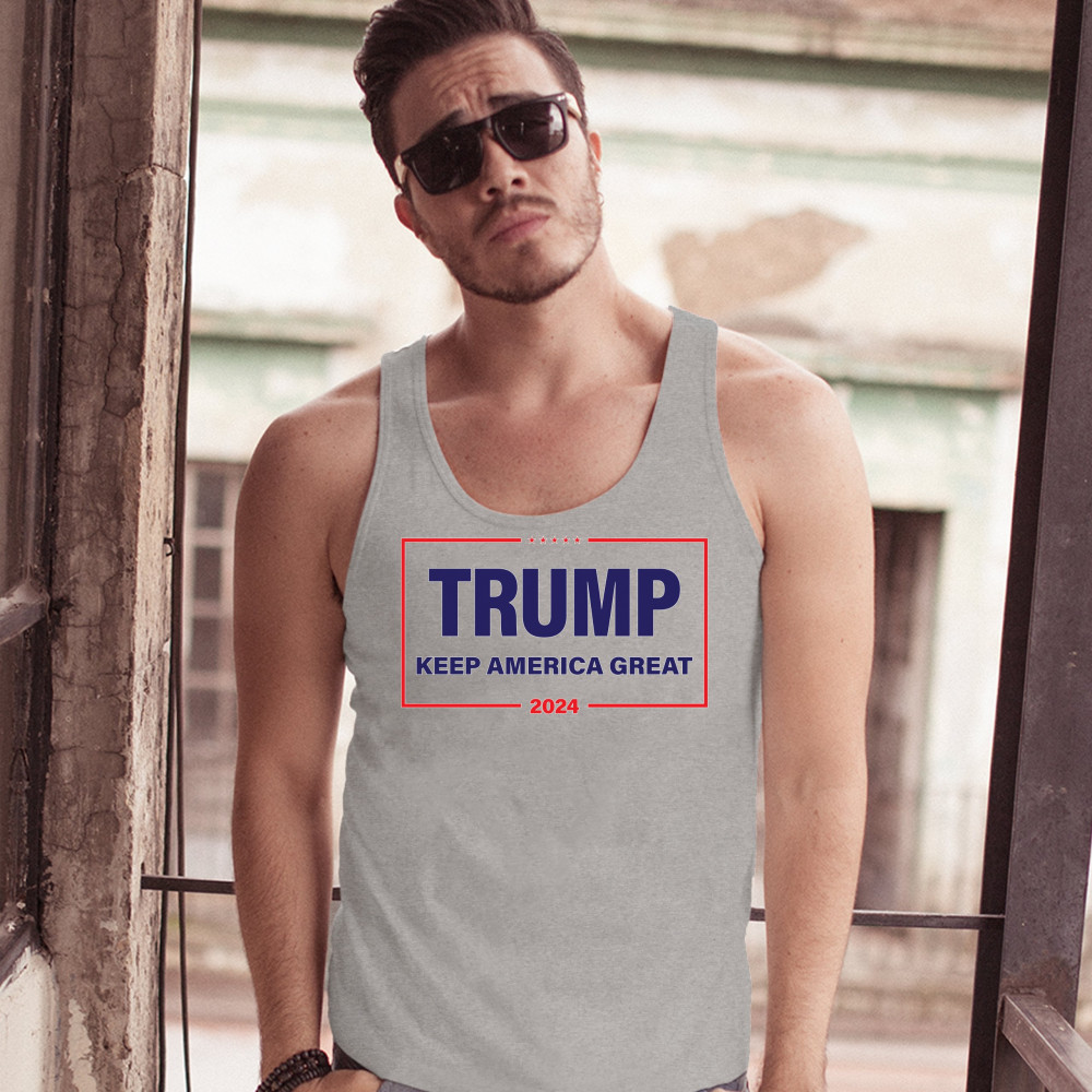 TRUMP KEEP AMERICA GREAT 2024 tank top re-elect donald trump maga men's top gray