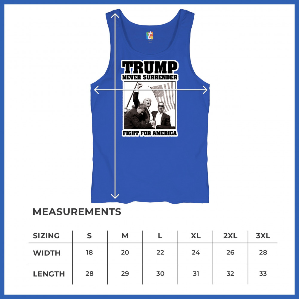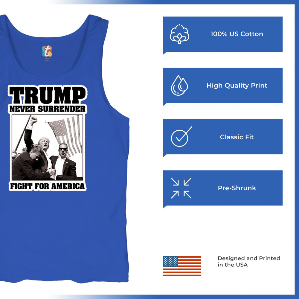 Express your unwavering support with the bold "Trump Never Surrender" design, perfect for rallies and everyday wear. Durable and stylish, show your patriotism proudly.