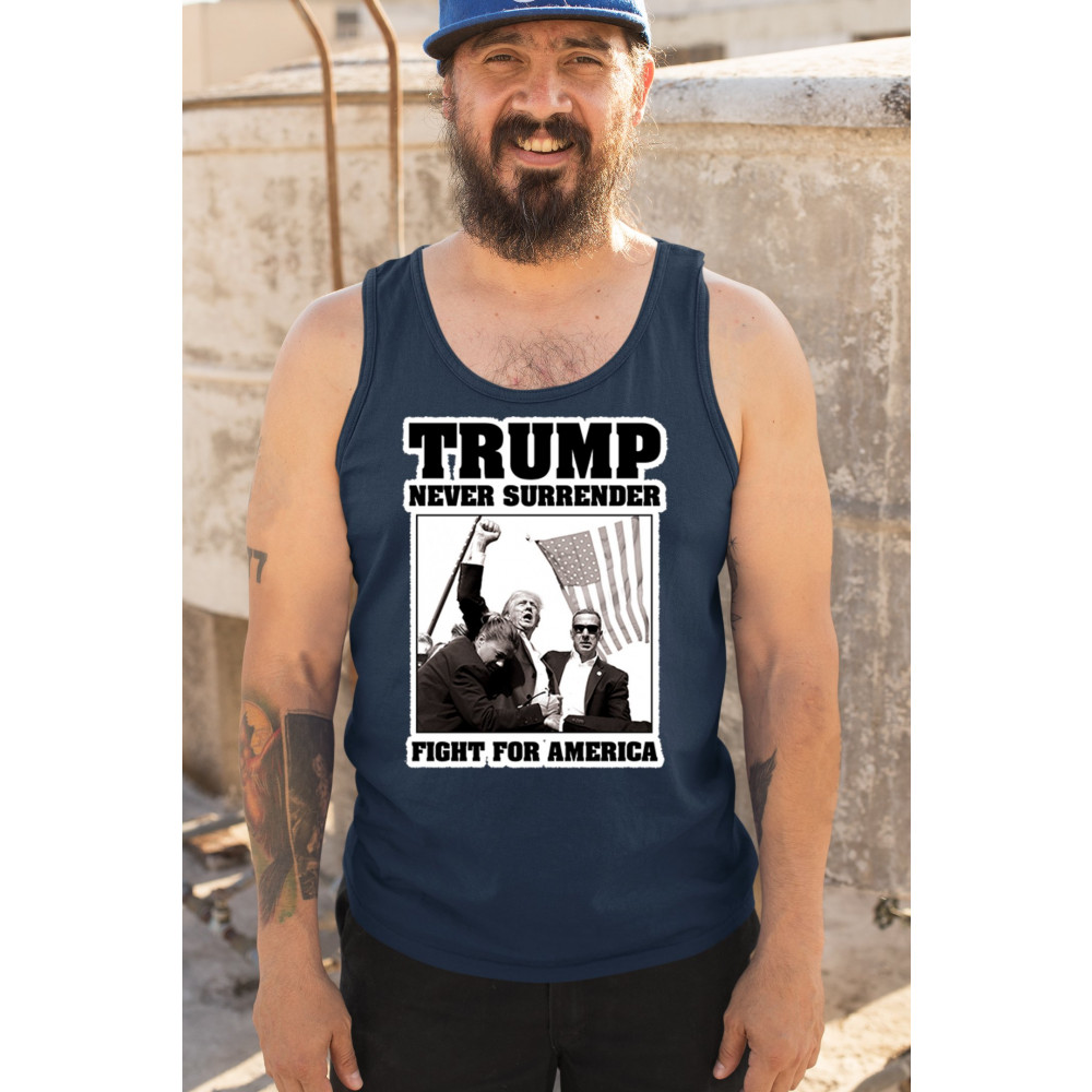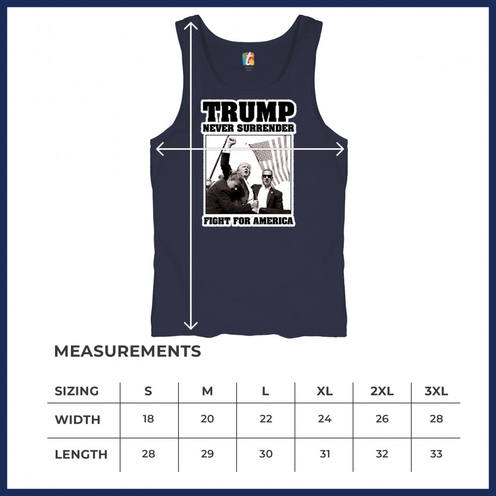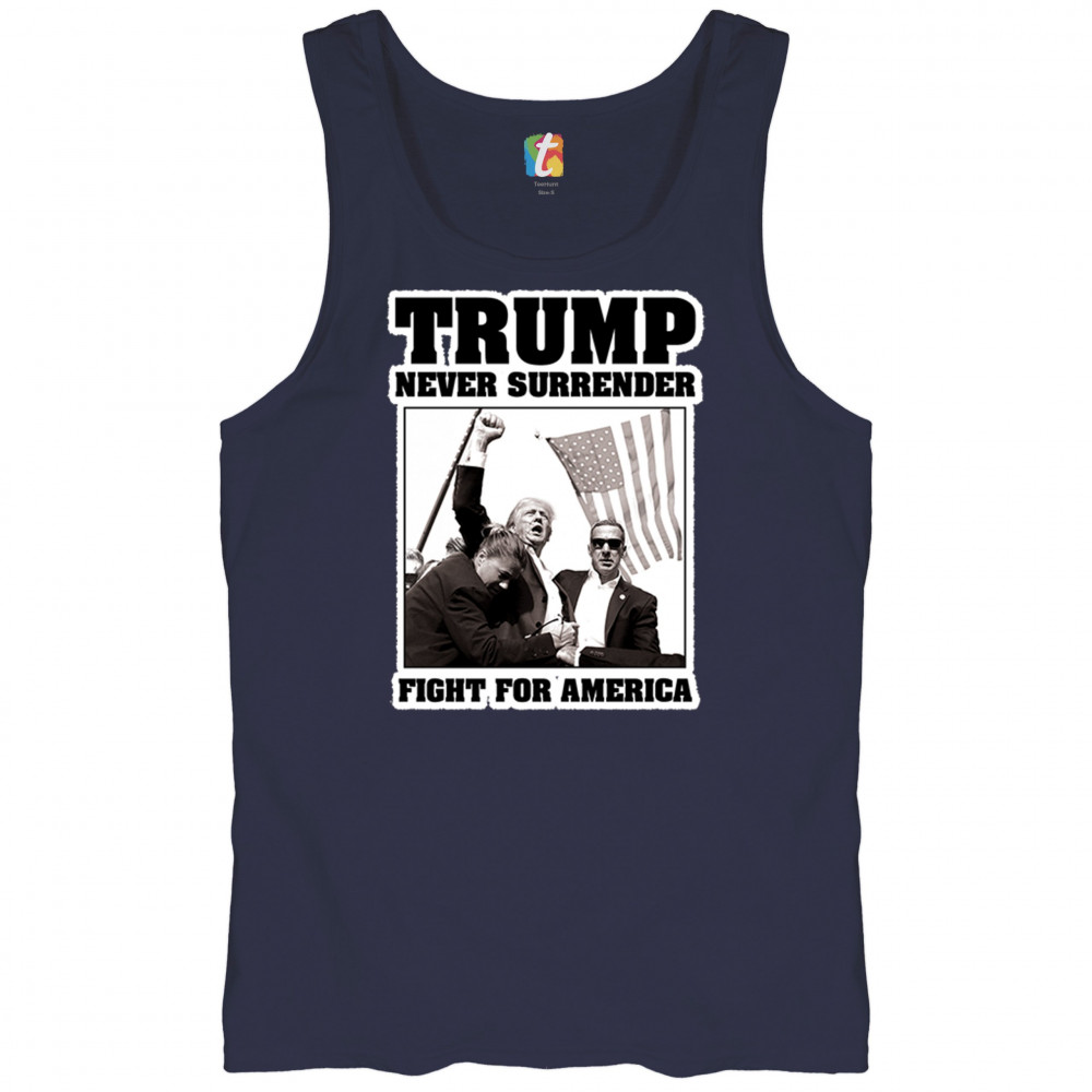 Express your unwavering support with the bold "Trump Never Surrender" design, perfect for rallies and everyday wear. Durable and stylish, show your patriotism proudly.