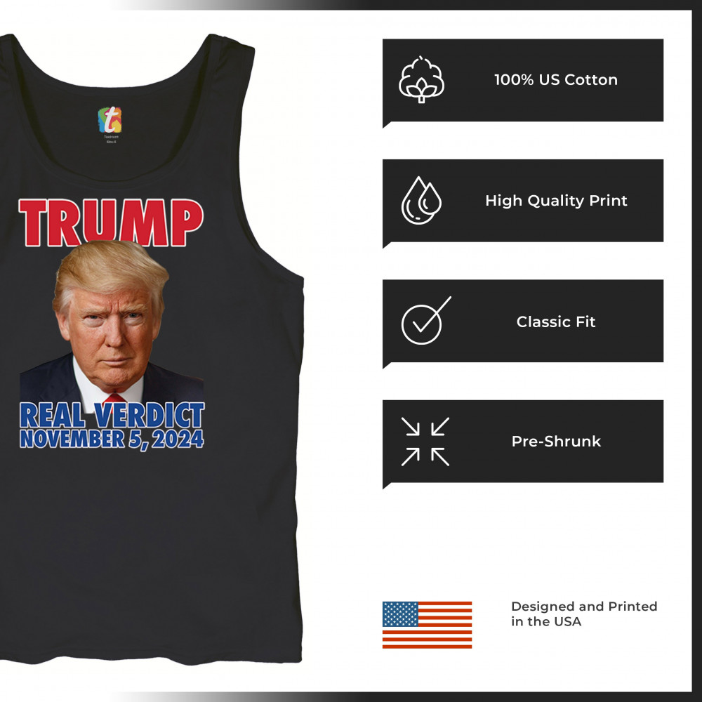 Show your support for Donald Trump with our bold "Real Verdict November 5, 2024" design. Perfect for Trump supporters, MAGA movement enthusiasts, and those who mock Biden with the "Let's Go Brandon" slogan.