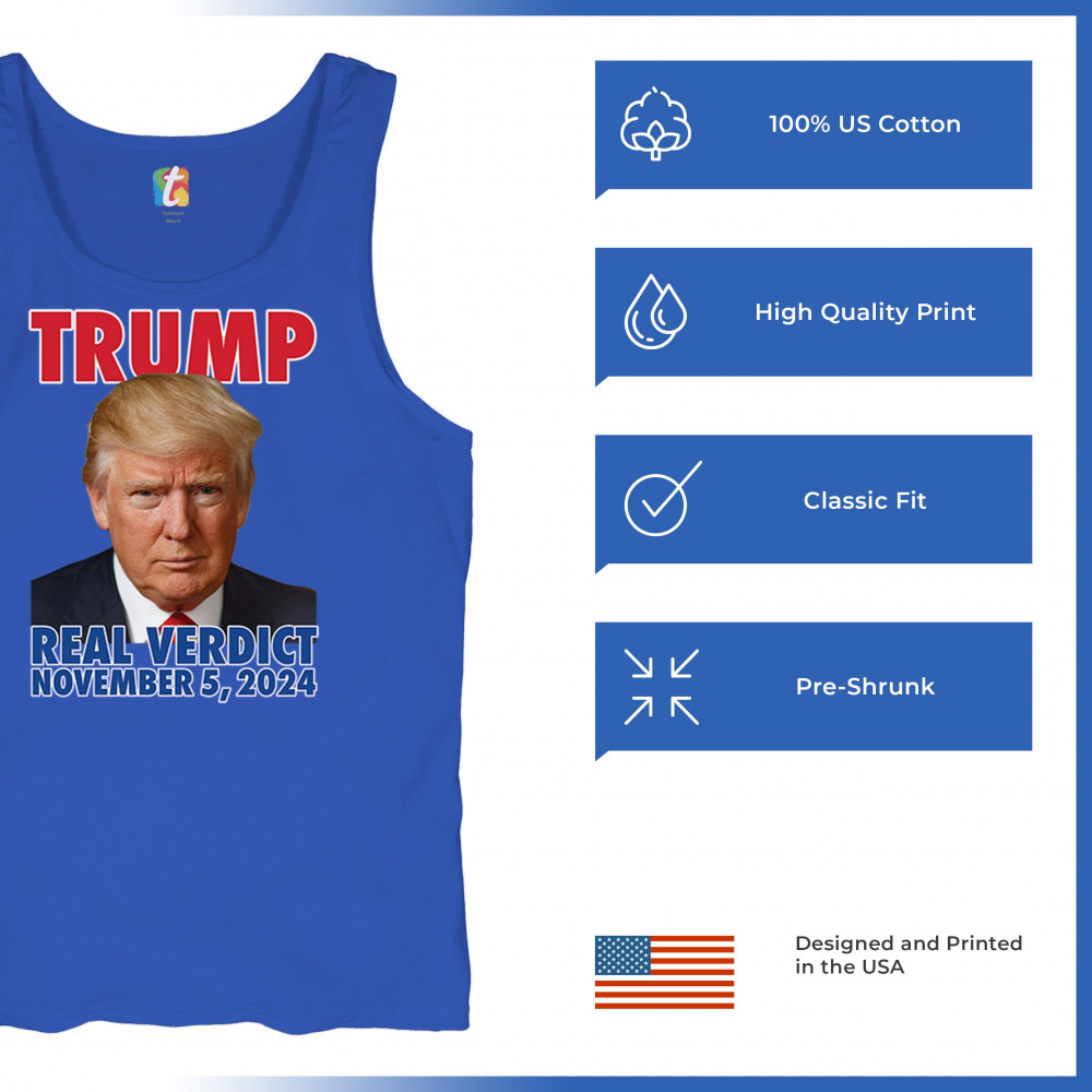 Show your support for Donald Trump with our "Real Verdict November 5, 2024" design. Featuring an image of Trump and bold text, this design is perfect for those who stand by their beliefs. With a reference to the popular "Let's Go Brandon" slogan, it resonates with those who mock Joe Biden. Made from high-quality materials, it ensures comfort and durability. Wear it to rallies, political events, or just out and about to express your support for Trump and the MAGA movement.