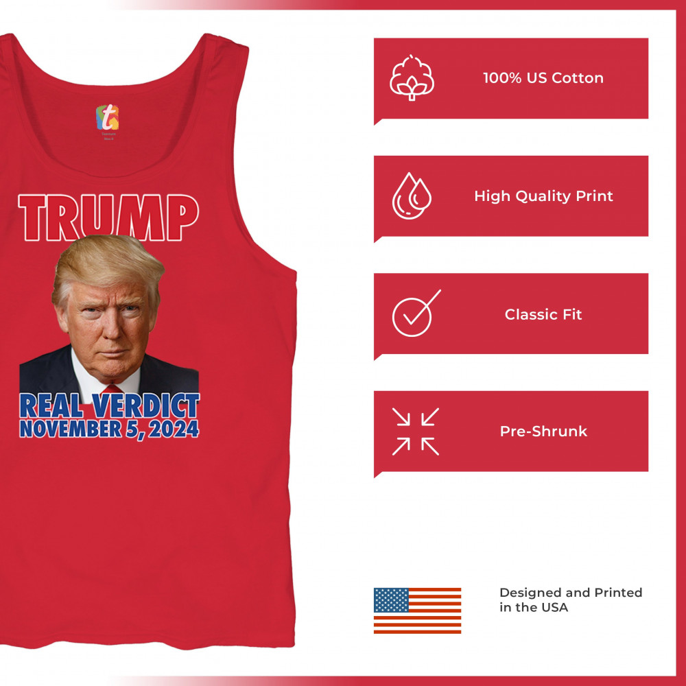 Show your support for Donald Trump with our bold "Real Verdict November 5, 2024" design. Perfect for Trump supporters, MAGA movement enthusiasts, and those who mock Biden with the "Let's Go Brandon" slogan.