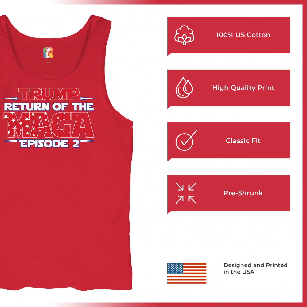 Make a bold statement with the "Return of the MAGA: Episode 2" design, celebrating Donald J. Trump and the Red Wave movement. Perfect for conservatives, Trump supporters, and Republicans who champion America First values, freedom, and the fight for a better future. A must-have for those who never surrender and stand for the people's mandate.