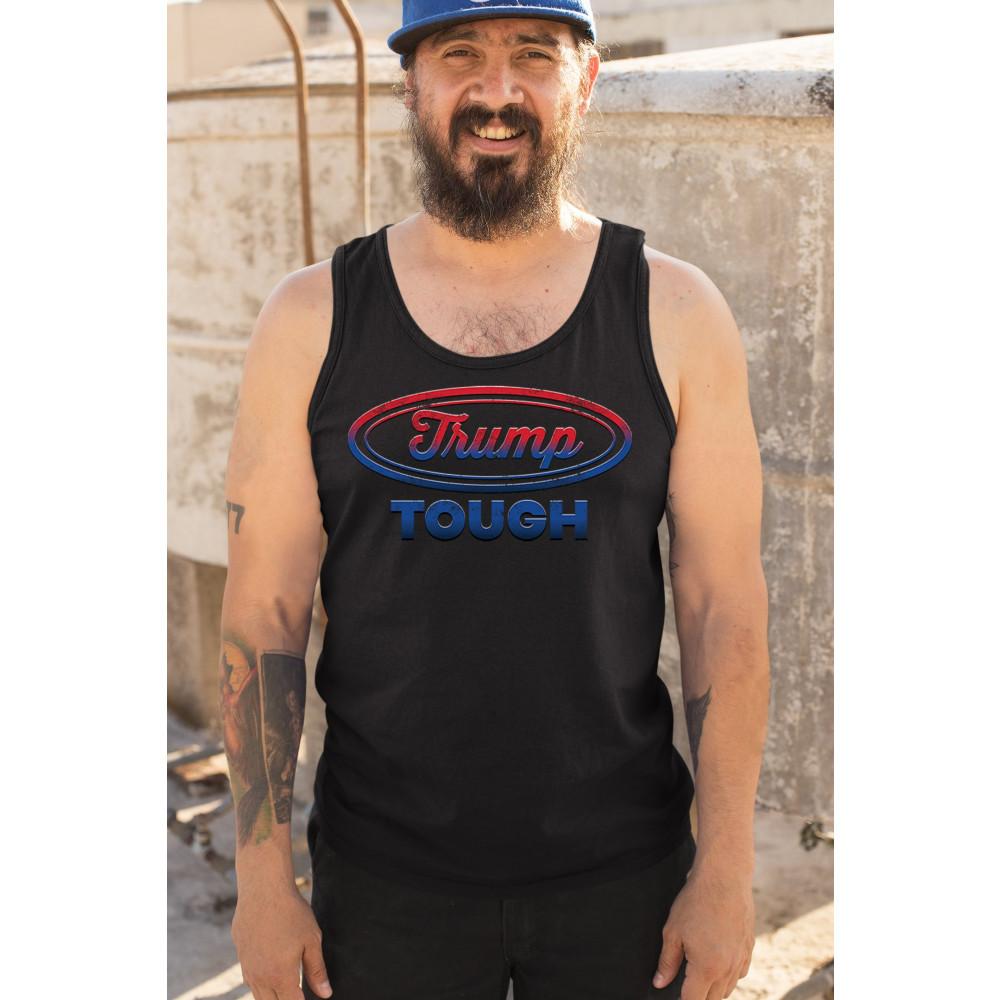 Embrace the "Trump Tough" spirit—show your support for conservative values, America first, and the American flag. Perfect for rallies or daily wear.