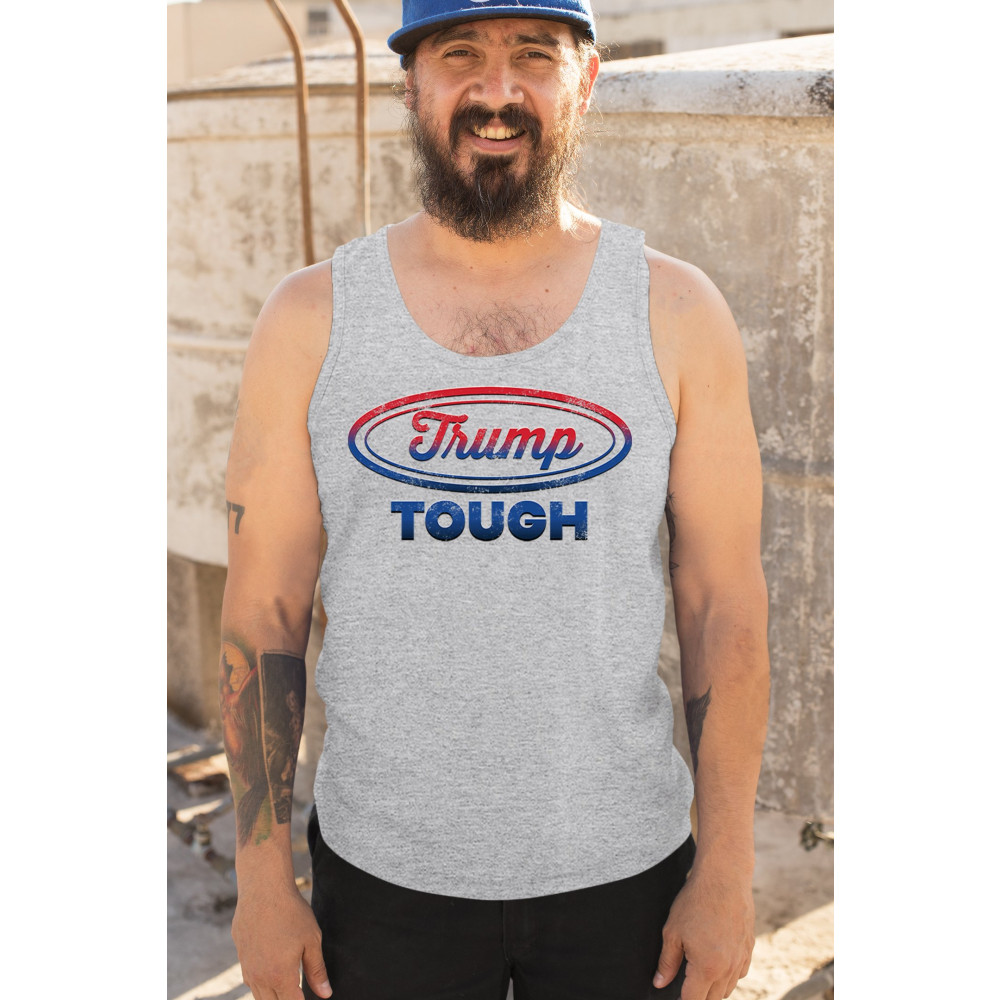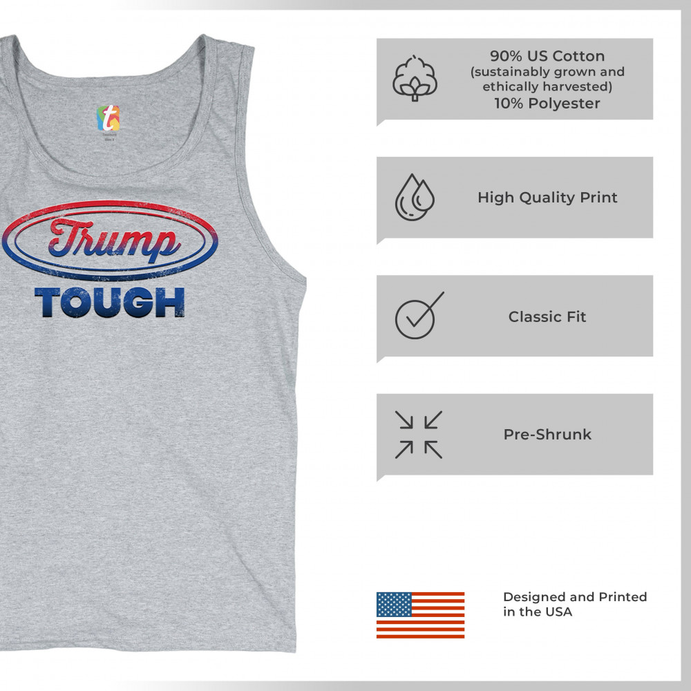 Embrace the "Trump Tough" spirit—show your support for conservative values, America first, and the American flag. Perfect for rallies or daily wear.