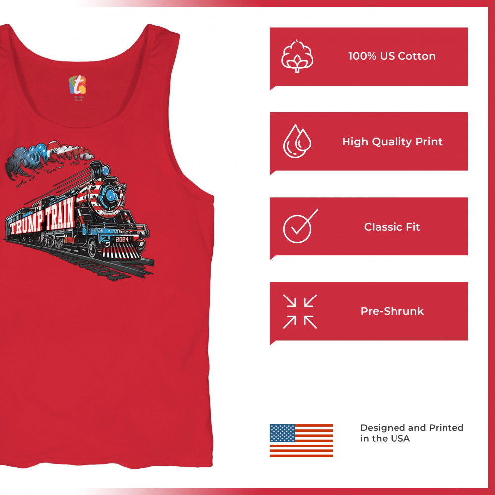 Hop on the Trump Train and support America First! This bold, patriotic tee is perfect for Republicans, conservatives, and the Red Wave movement.