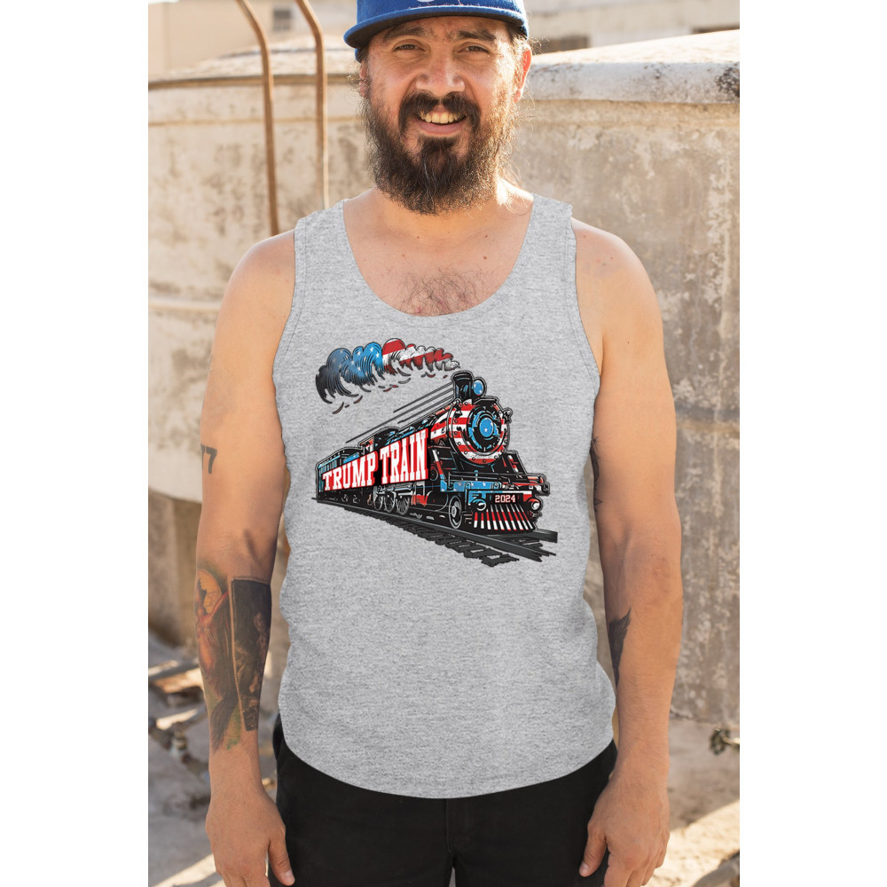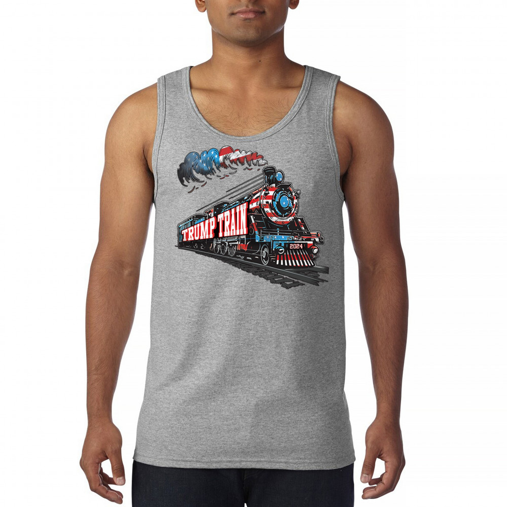 Celebrate the Trump Train with this bold, patriotic design. Featuring a steam engine wrapped in the American flag, this tee is perfect for Trump supporters and conservatives looking to make a statement. Join the Red Wave, fight for victory, and showcase your support for the 47th President. Whether at rallies or casual events, this design represents we the people have spoken and the push for 4 More Years.