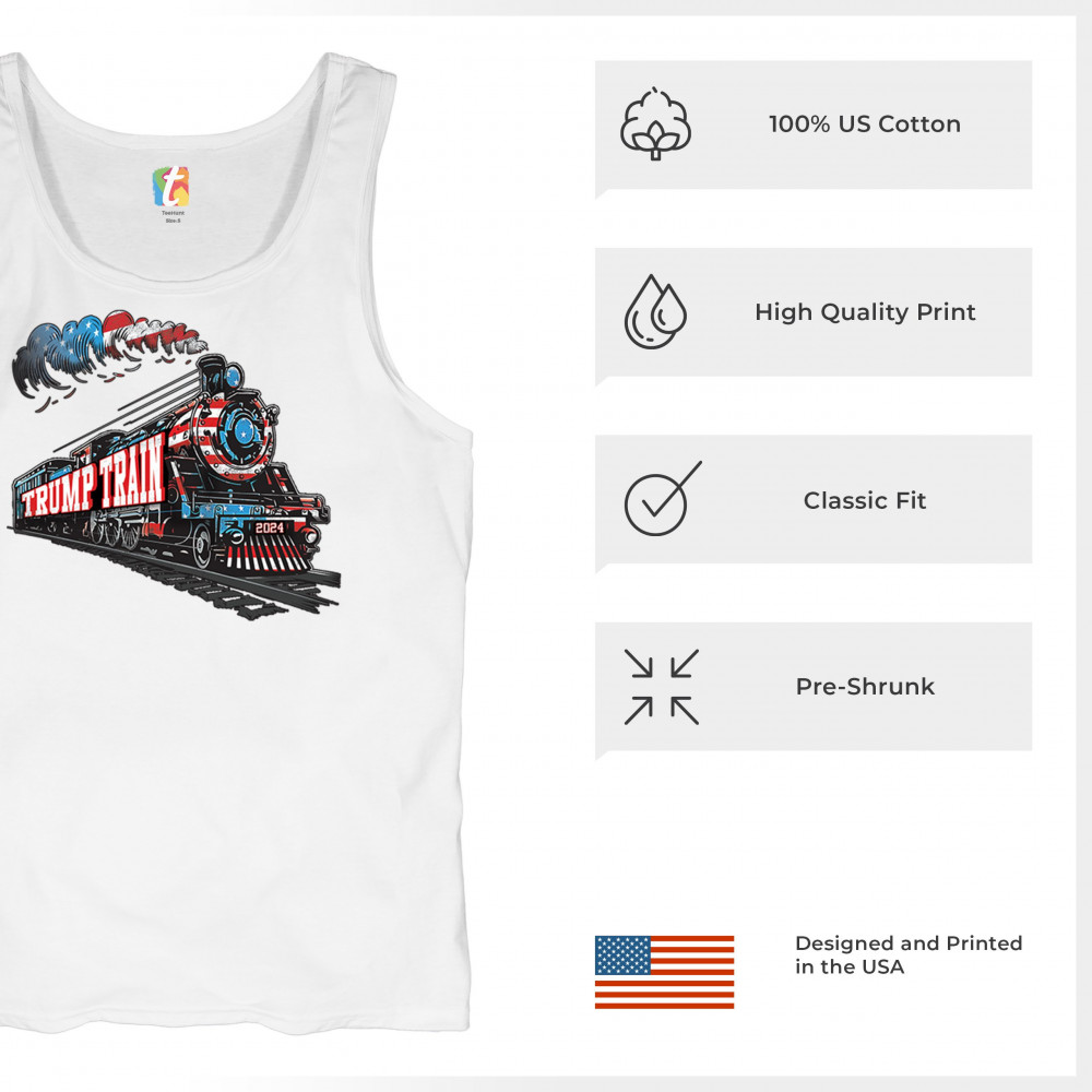 Celebrate the Trump Train with this bold, patriotic design. Featuring a steam engine wrapped in the American flag, this tee is perfect for Trump supporters and conservatives looking to make a statement. Join the Red Wave, fight for victory, and showcase your support for the 47th President. Whether at rallies or casual events, this design represents we the people have spoken and the push for 4 More Years.