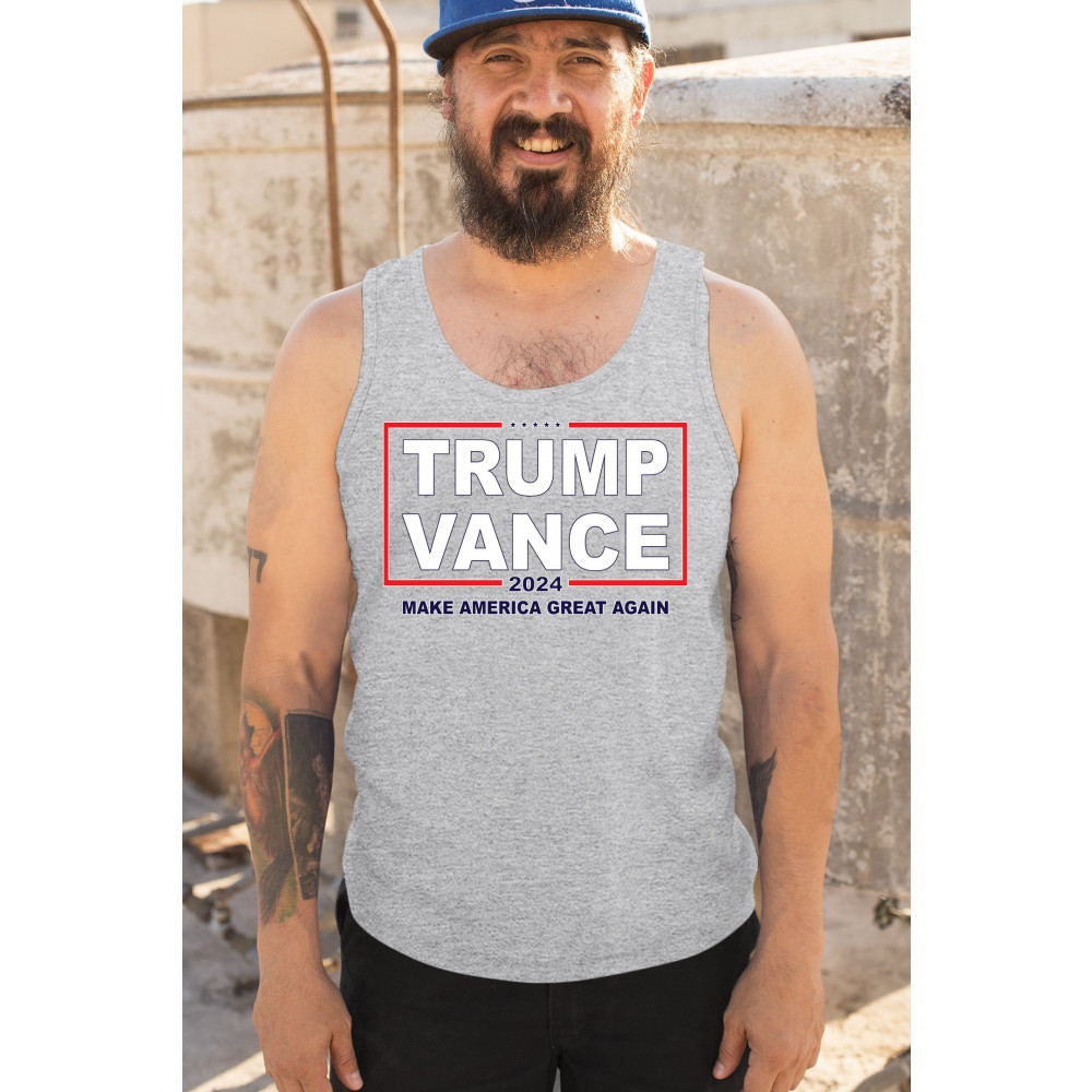 Showcase your support for the Trump-Vance 2024 campaign with this eye-catching design. Emblazoned with the "Make America Great Again" slogan, this artwork is perfect for conservative rallies, political gatherings, or simply expressing your political views. The striking red, white, and blue colors highlight your American pride and dedication to the conservative movement. Comfortable and stylish, this design is a great addition to any wardrobe, allowing you to stand out and make a statement wherever you go.