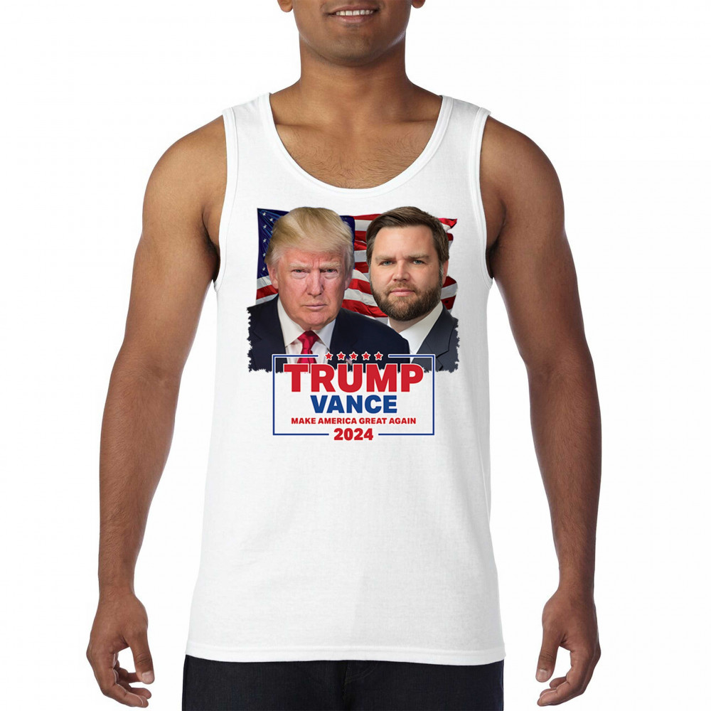 Support the Trump-Vance 2024 campaign with our exclusive design, featuring prominent images of Donald Trump and J.D. Vance set against the American flag. This design is perfect for rallies, political events, and daily wear, showcasing your dedication to the conservative movement. Its bold graphics and patriotic theme make it a standout piece for any supporter. Join the movement and proudly display your support with this dynamic and inspiring design.