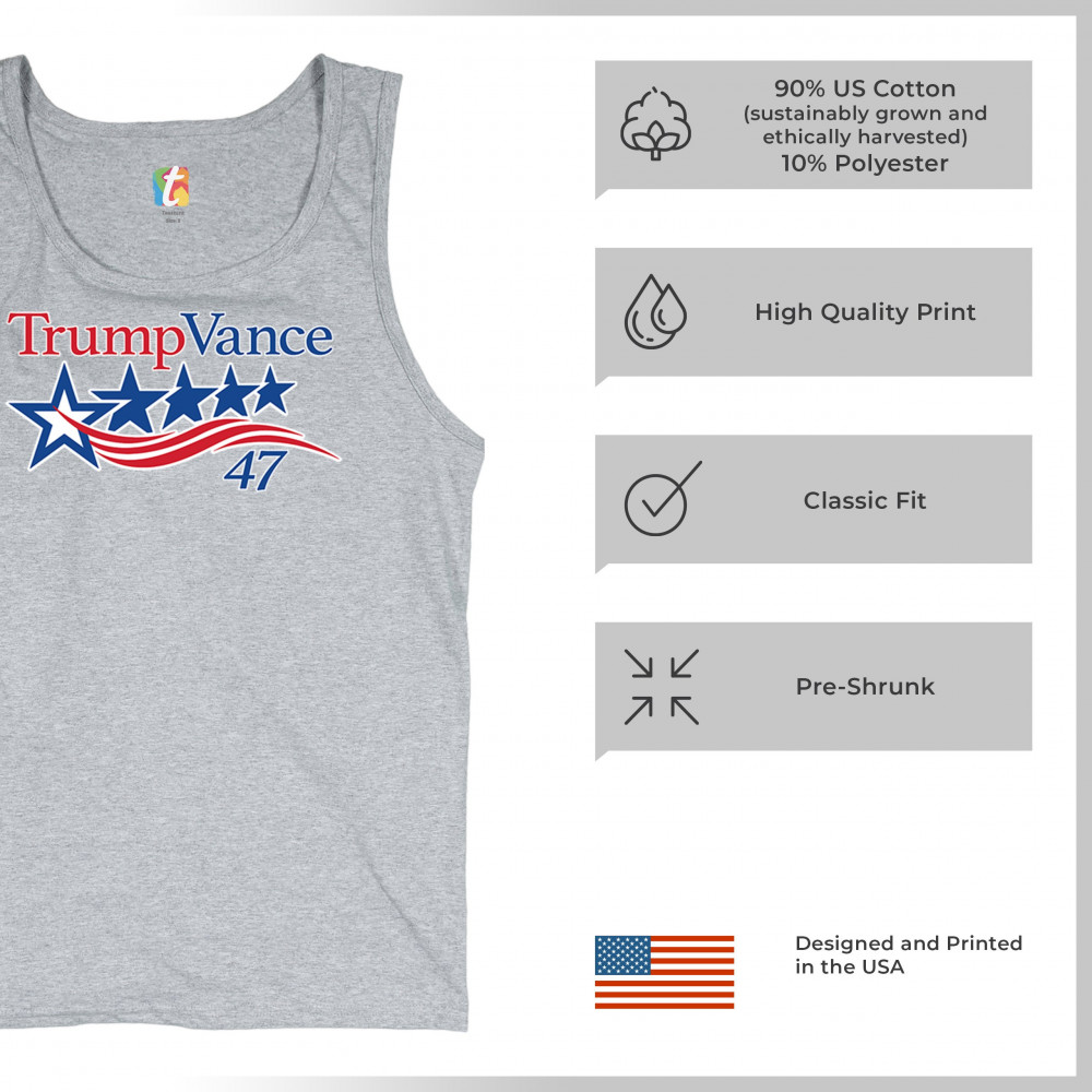 Celebrate patriotism and conservative strength with the "Trump Vance 47" design, a perfect tribute to the America First movement. This design features a bold representation of Donald J. Trump and J.D. Vance’s commitment to American values, proudly showcasing the Red Wave. For supporters who want to rally behind Republican ideals, this is the design to wear and share, symbolizing hope, unity, and victory for America's future.