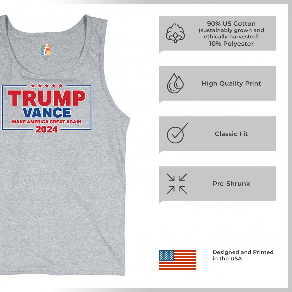 Show your support for Trump-Vance 2024 with this patriotic design featuring the American flag and bold slogan. Perfect for rallies and conservative events.