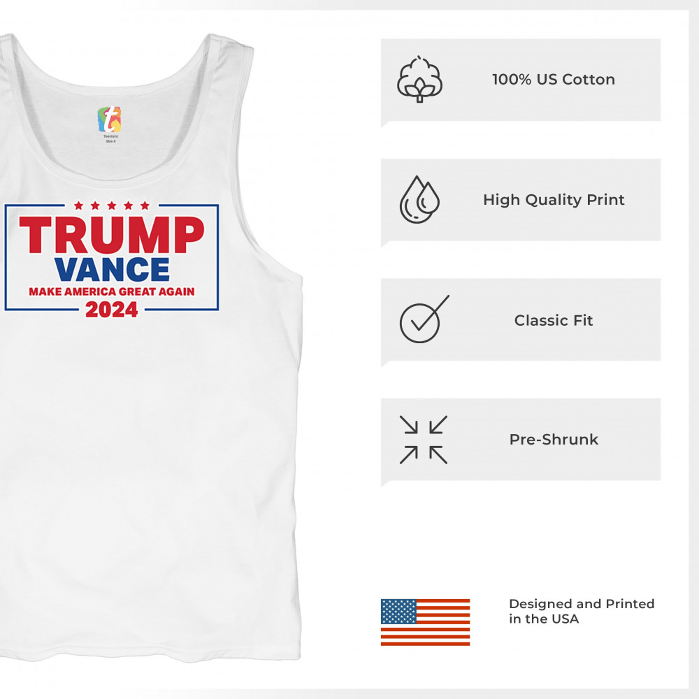 Show your support for Trump-Vance 2024 with this patriotic design featuring the American flag and bold slogan. Perfect for rallies and conservative events.