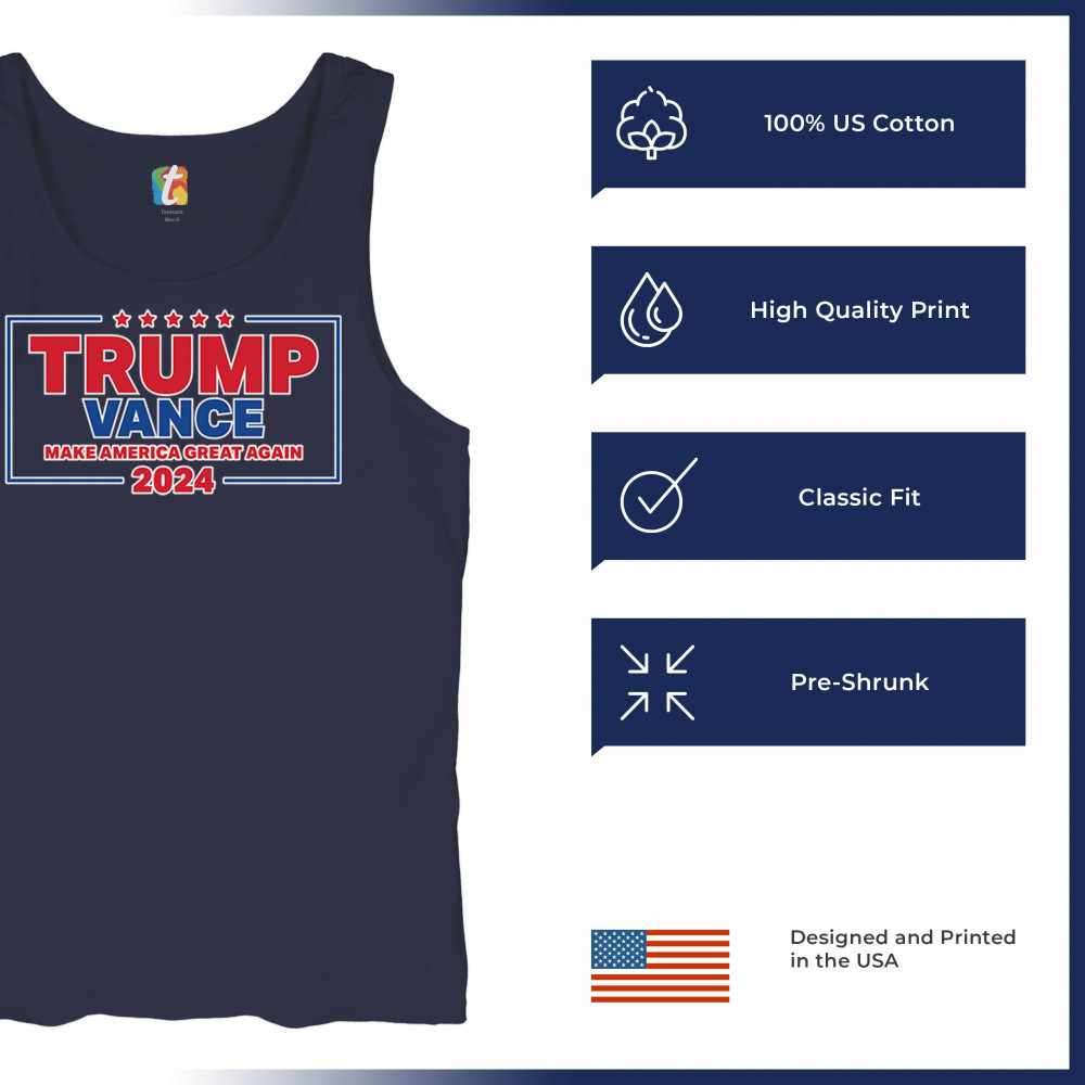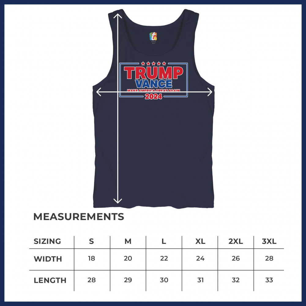 Show your support for Trump-Vance 2024 with this patriotic design featuring the American flag and bold slogan. Perfect for rallies and conservative events.