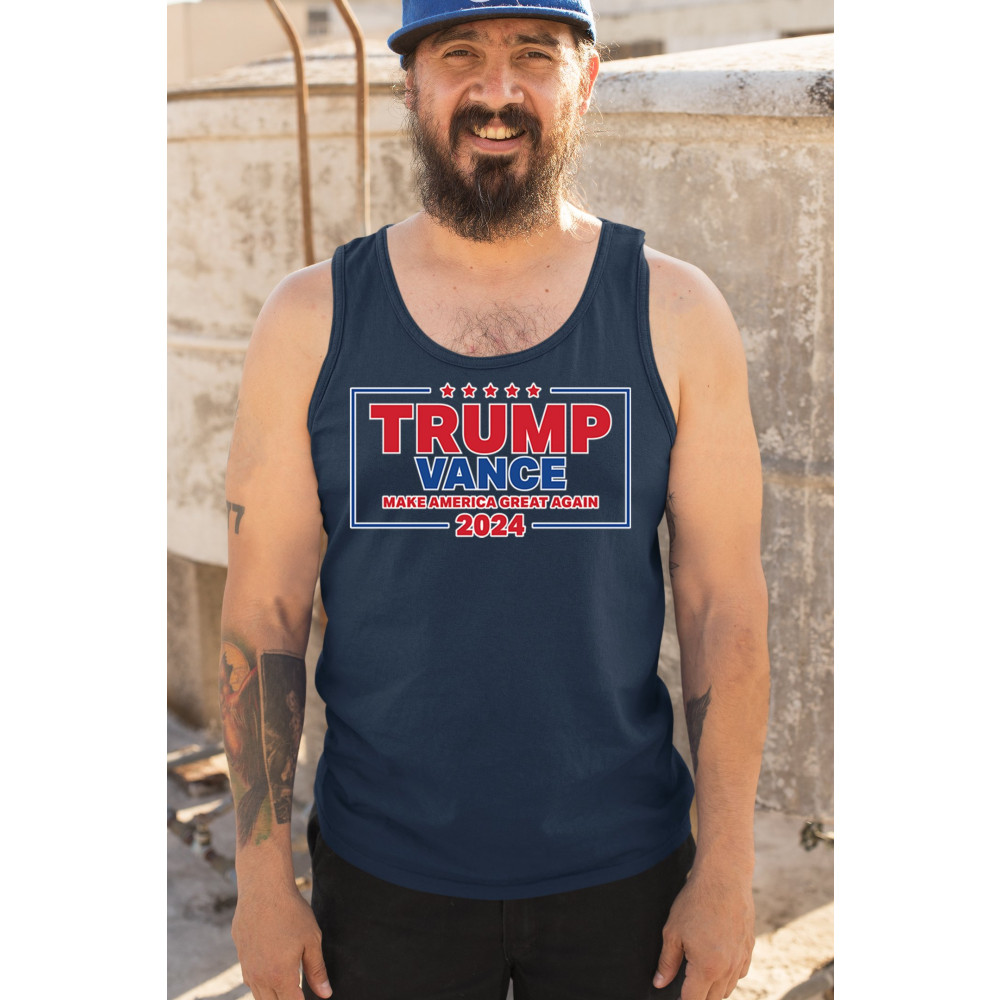 Express your support for the Trump-Vance 2024 campaign with this striking design that embodies American patriotism and conservative values. Featuring the American flag and the bold slogan "Trump Vance 2024," this design is perfect for rallies, political events, or daily wear. It’s a testament to your unwavering support for conservative ideals and the vision of making America great again. Join the movement and show your allegiance with this powerful and iconic design.