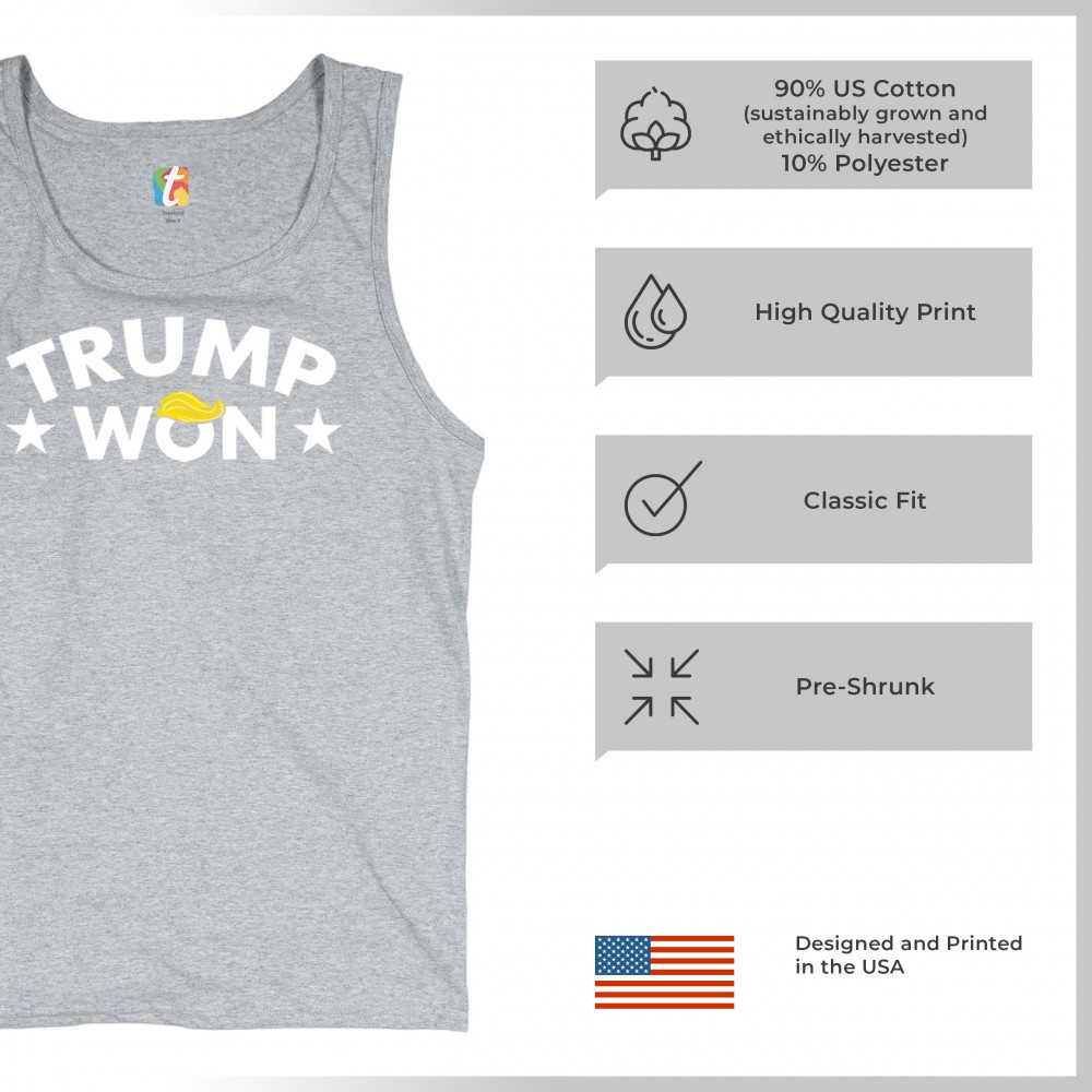 The "Trump Won" design boldly represents the spirit of victory, resilience, and unwavering support for America First principles. Ideal for patriots, Republicans, and supporters of Donald J. Trump, this statement graphic captures the momentum of the Red Wave and the people's mandate. Make your voice heard and show your dedication to the fight for freedom with this iconic design.