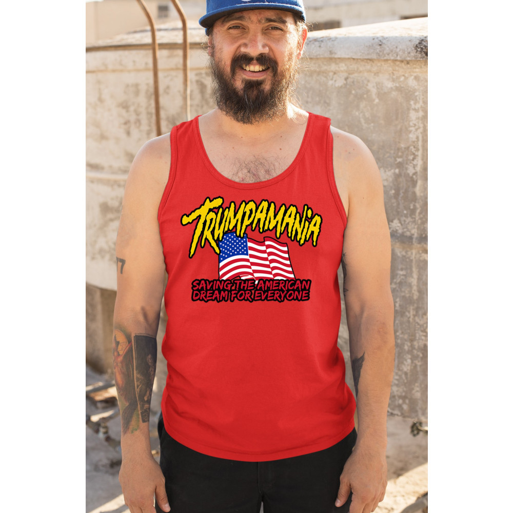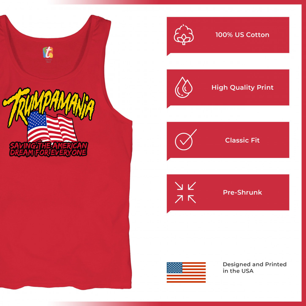Celebrate the American dream with this powerful "Trumpamania" design. Perfect for rallies and beyond, this design captures the essence of conservatism and the fight for freedom. It’s a testament to the unstoppable spirit of those who trust in God and reject government overreach. With an American flag proudly displayed, this design aligns with the values of victory, rebellion, and unwavering support for Trump.
