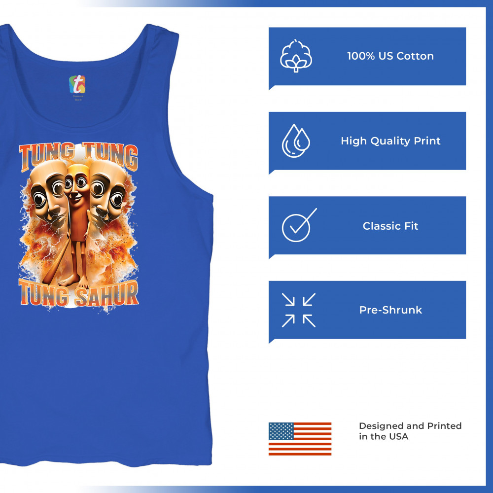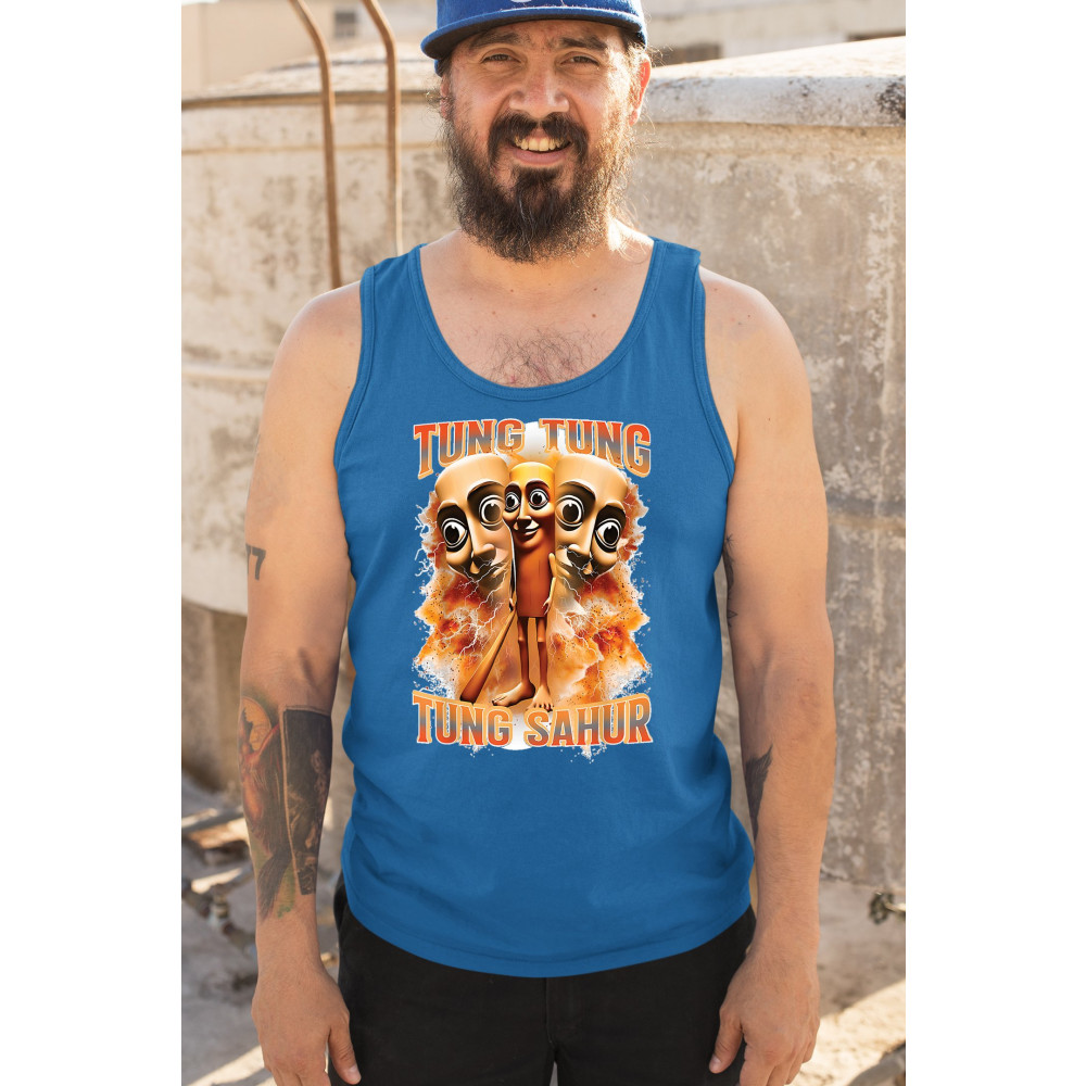 Brace yourself for pure meme insanity with the Tung Tung Tung Sahur shirt—a cursed-core fever dream built from TikTok chaos and Gen Z humor. This design blends internet meme culture, ironic fashion, brainrot visuals, and Gen Alpha absurdity. Perfect for those who wear memes, laugh at chaos, and live for viral trends.