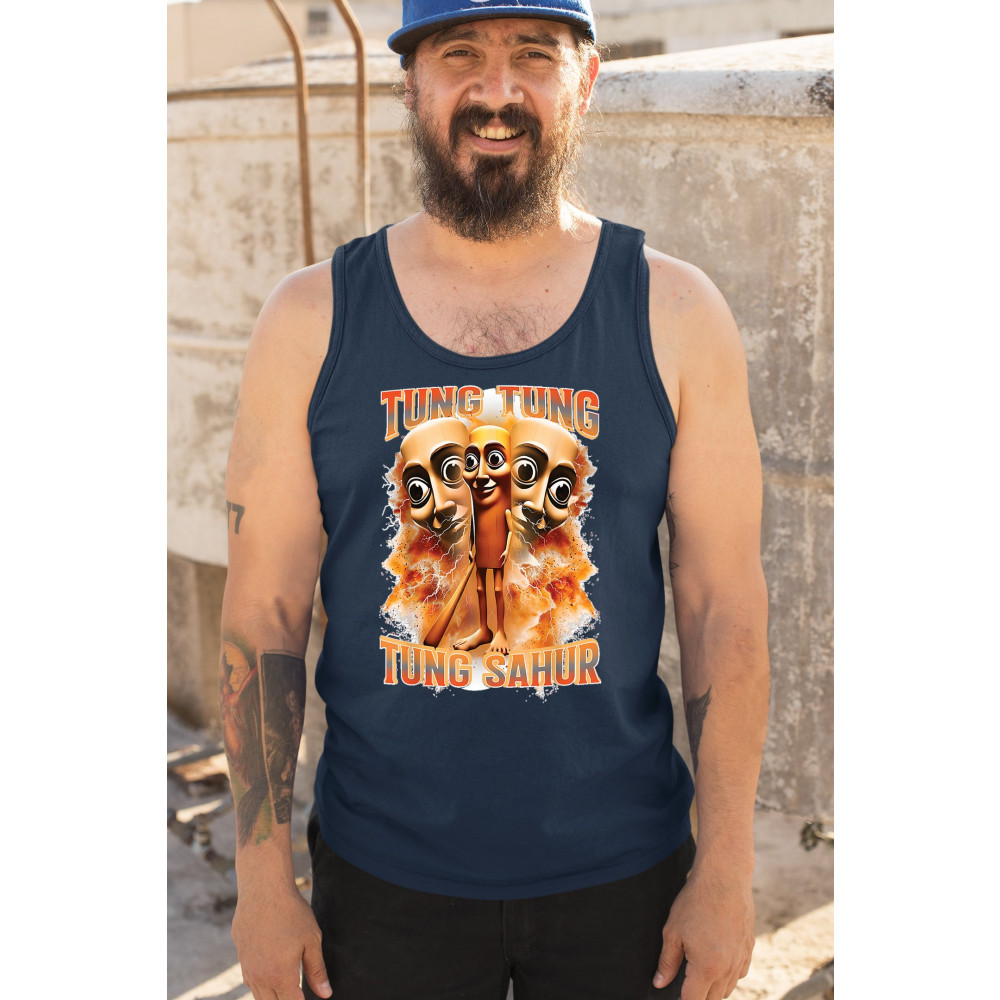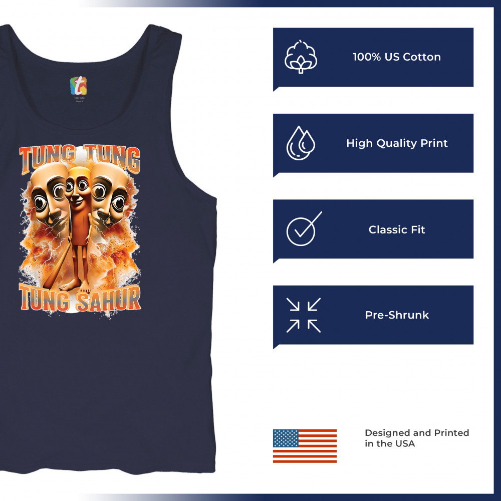 Brace yourself for pure meme insanity with the Tung Tung Tung Sahur shirt—a cursed-core fever dream built from TikTok chaos and Gen Z humor. This design blends internet meme culture, ironic fashion, brainrot visuals, and Gen Alpha absurdity. Perfect for those who wear memes, laugh at chaos, and live for viral trends.