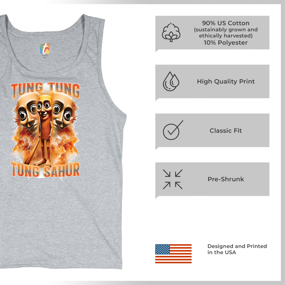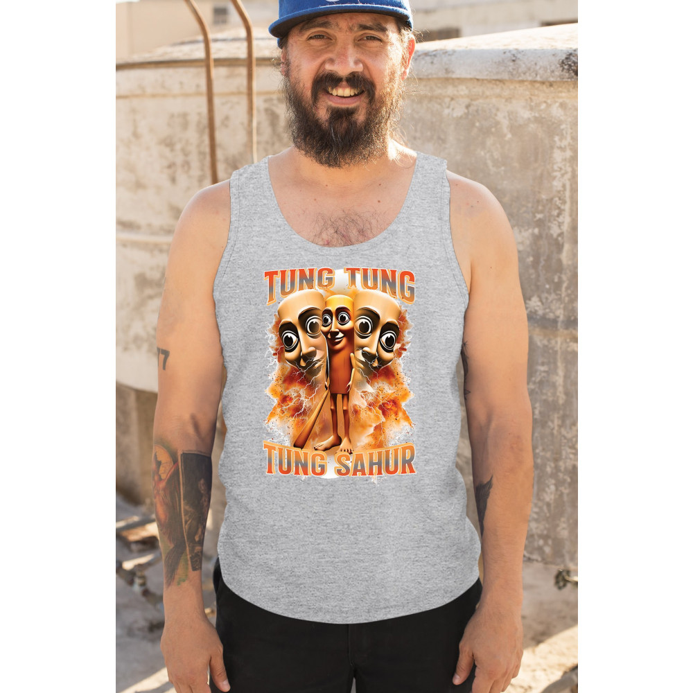 Brace yourself for pure meme insanity with the Tung Tung Tung Sahur shirt—a cursed-core fever dream built from TikTok chaos and Gen Z humor. This design blends internet meme culture, ironic fashion, brainrot visuals, and Gen Alpha absurdity. Perfect for those who wear memes, laugh at chaos, and live for viral trends.