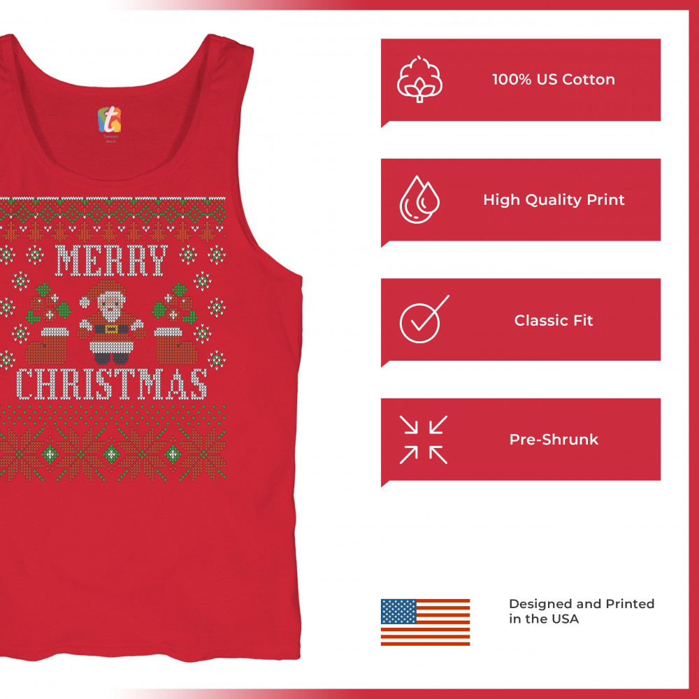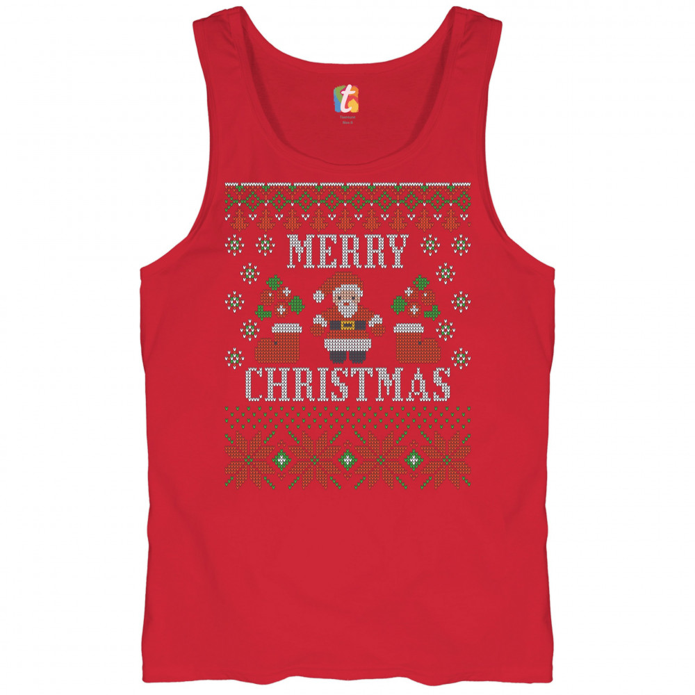 UGLY SWEATER SANTA CLAUS tank top let it snow christmas jingle bells men's top red