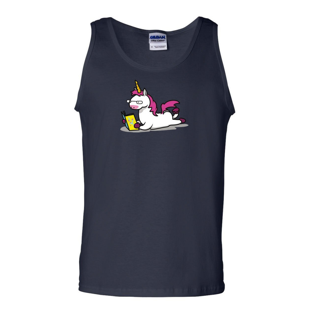 UNICORN BOOKWORM tank top funny college student nerd geek study sleeveless navy blue
