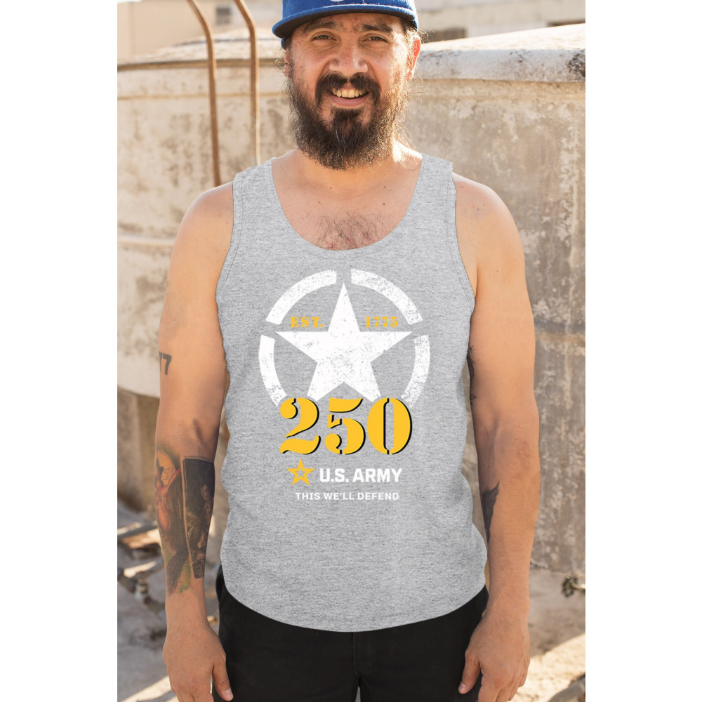 Boldly marking the U.S. Army’s 250th anniversary, this design includes a distressed white star, 1775 EST detail, and bold yellow “250†typeface beneath the iconic motto “This We’ll Defend.†A fitting tribute for veterans, service members, and families who want to show respect and pride during military observances or patriotic events.