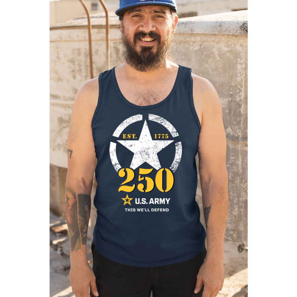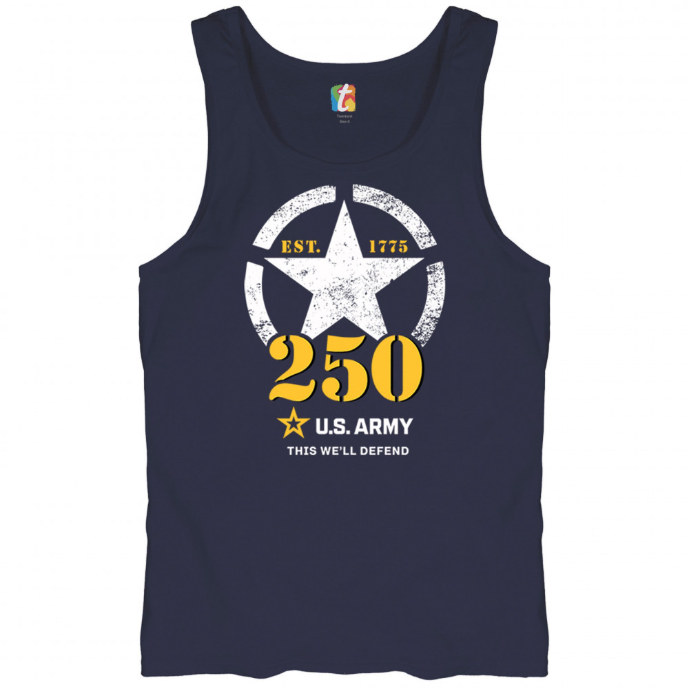 Boldly marking the U.S. Army’s 250th anniversary, this design includes a distressed white star, 1775 EST detail, and bold yellow “250†typeface beneath the iconic motto “This We’ll Defend.†A fitting tribute for veterans, service members, and families who want to show respect and pride during military observances or patriotic events.