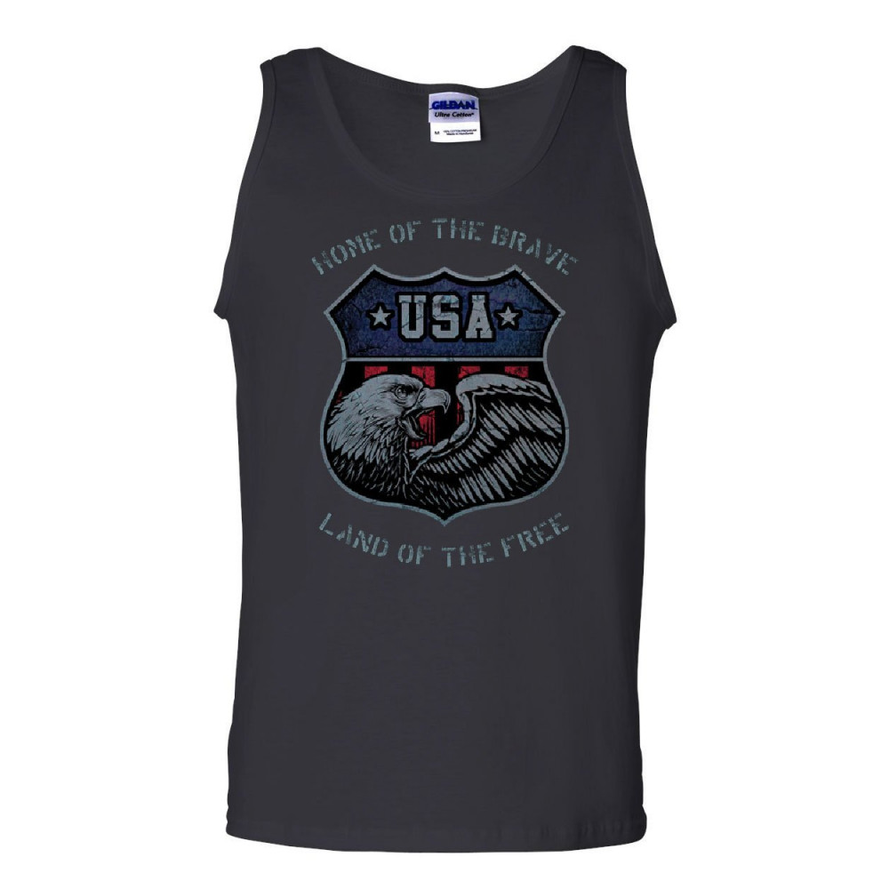USA SHIELD PATRIOTIC tank top home of the brave land of the free sleeveless black