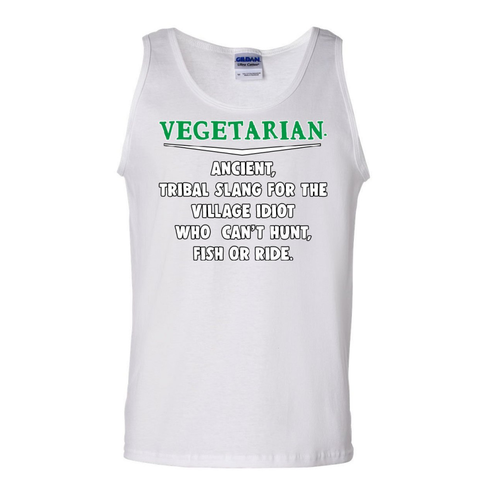 VEGETARIAN - VILLAGE IDIOT vegetarian definition tank top offensive village idiot vegan meat sleeveless white