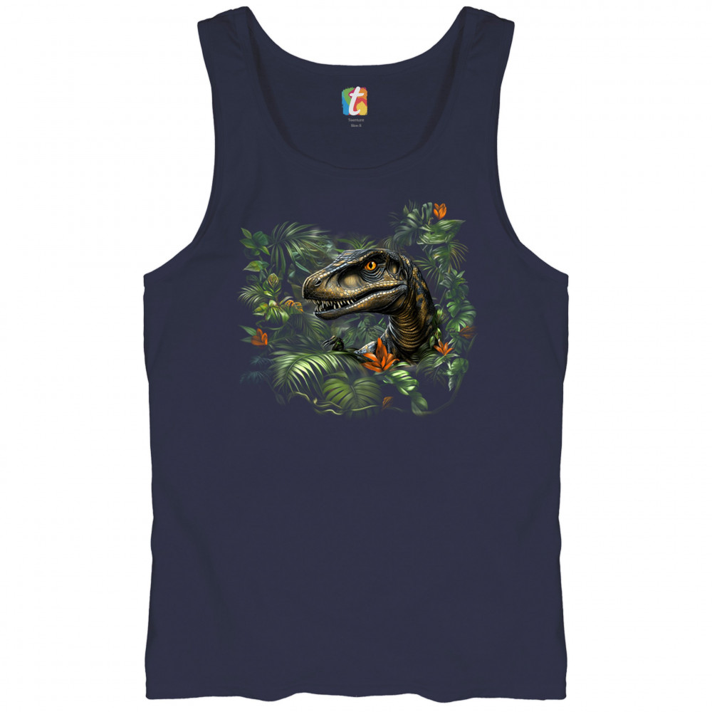 Step into the wild with this striking jungle raptor design. A highly detailed velociraptor peeks from vivid tropical foliage and flowers, perfect for dinosaur lovers, fossil fans, and ancient creature enthusiasts. Whether for Jurassic adventures, museum trips, or themed events, this design unleashes untamed prehistoric energy.