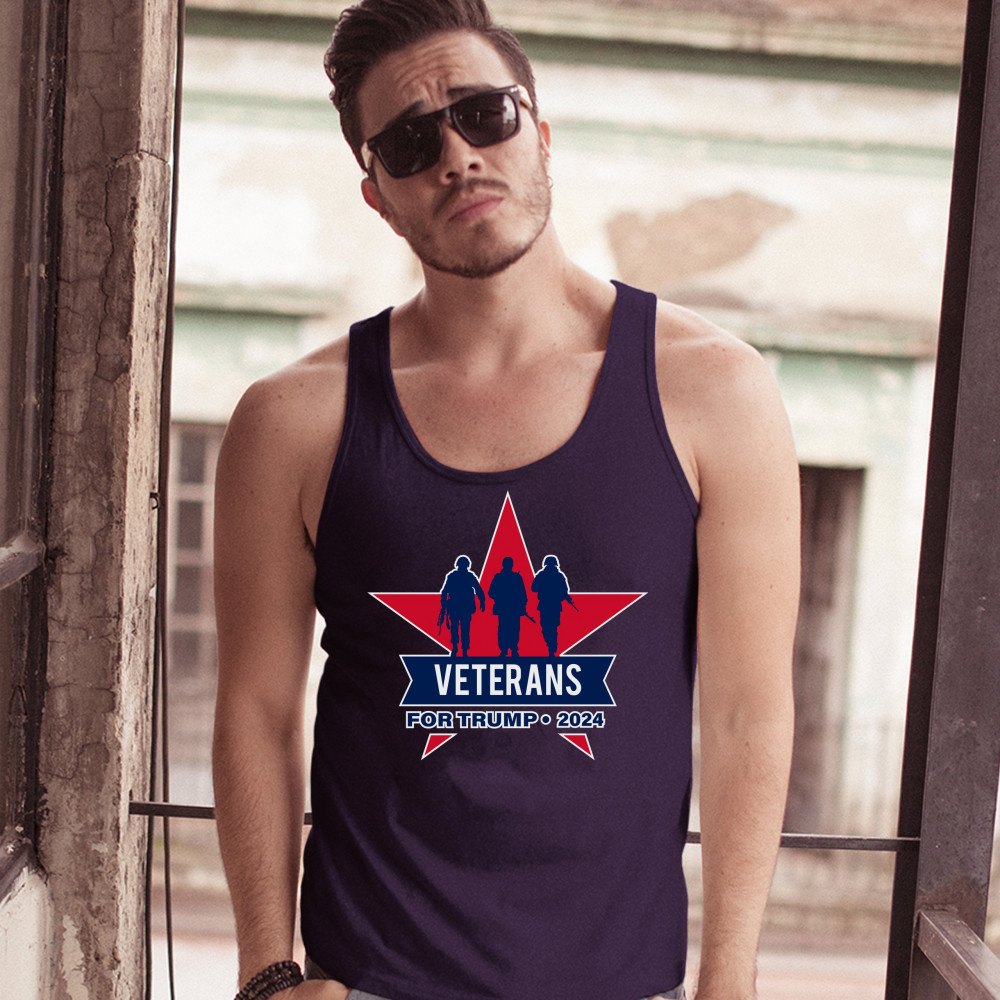 VETERANS FOR TRUMP 2024 tank top keep america great maga military men's top navy blue