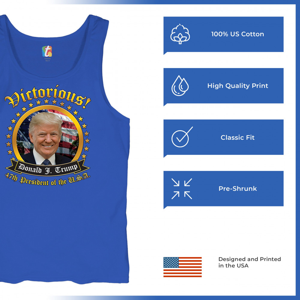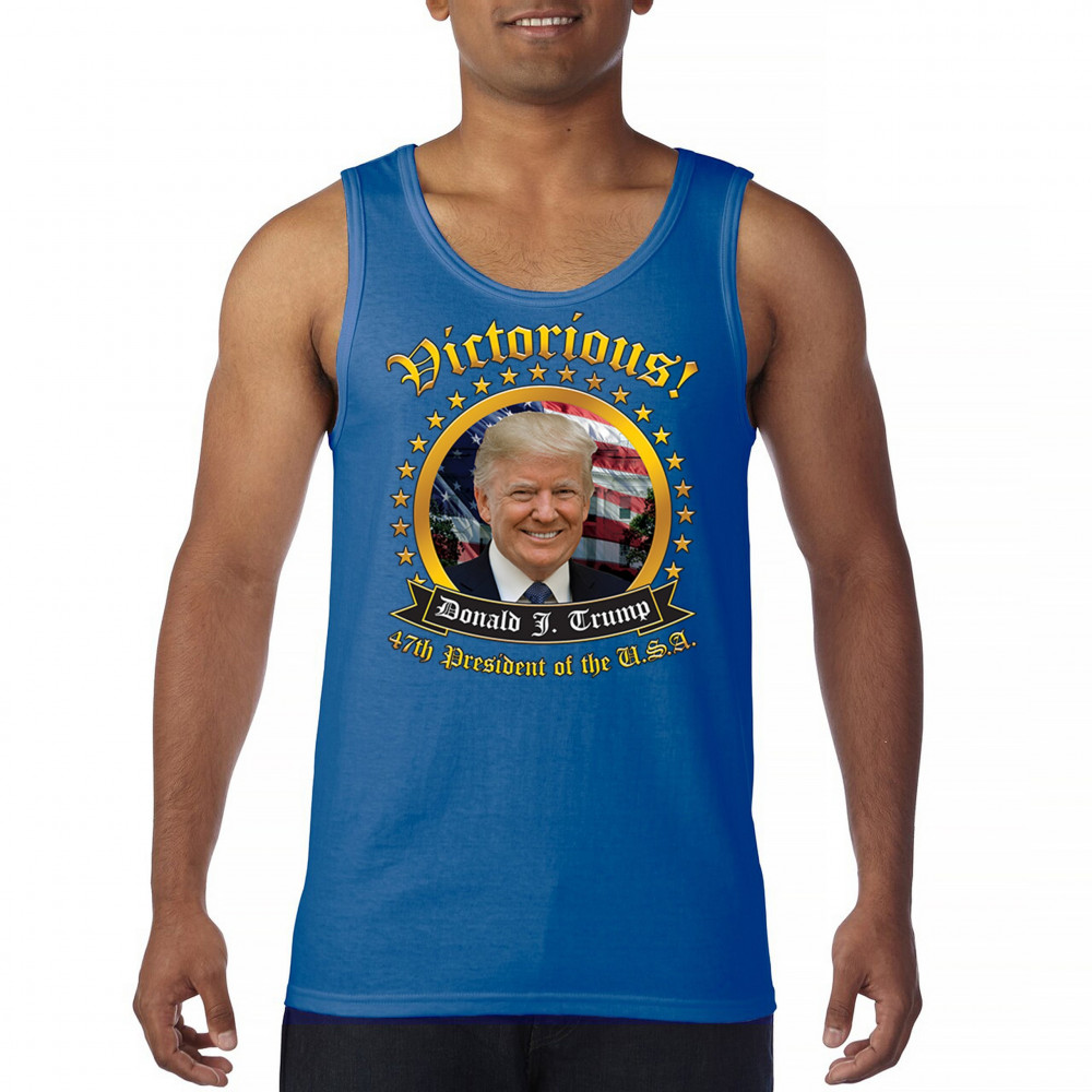 The "Victorious" design captures the spirit of Donald J. Trump’s victory as the 47th President, embodying the pride and patriotism of true American supporters. With elements of the American flag and an inspiring message, it’s a perfect symbol for Republicans, conservatives, and America First advocates. Celebrate the Red Wave and stand for a strong, united nation. Perfect for showing support at rallies, gatherings, or casual wear.