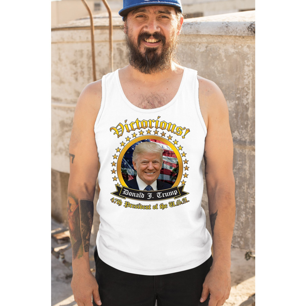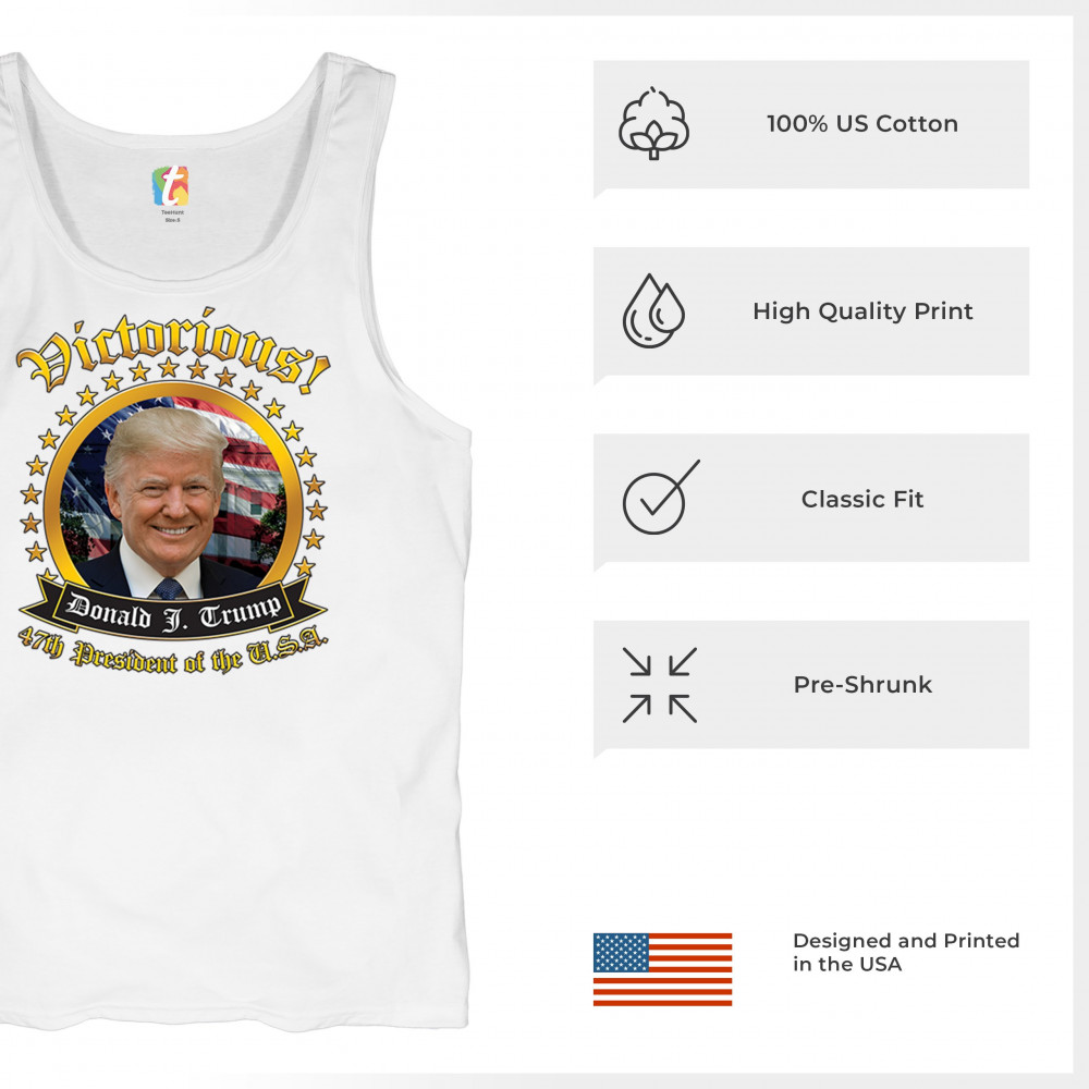 Showcase your support for Trump as the 47th President with this "Victorious" design. Perfect for patriots, America First advocates, and Red Wave supporters.