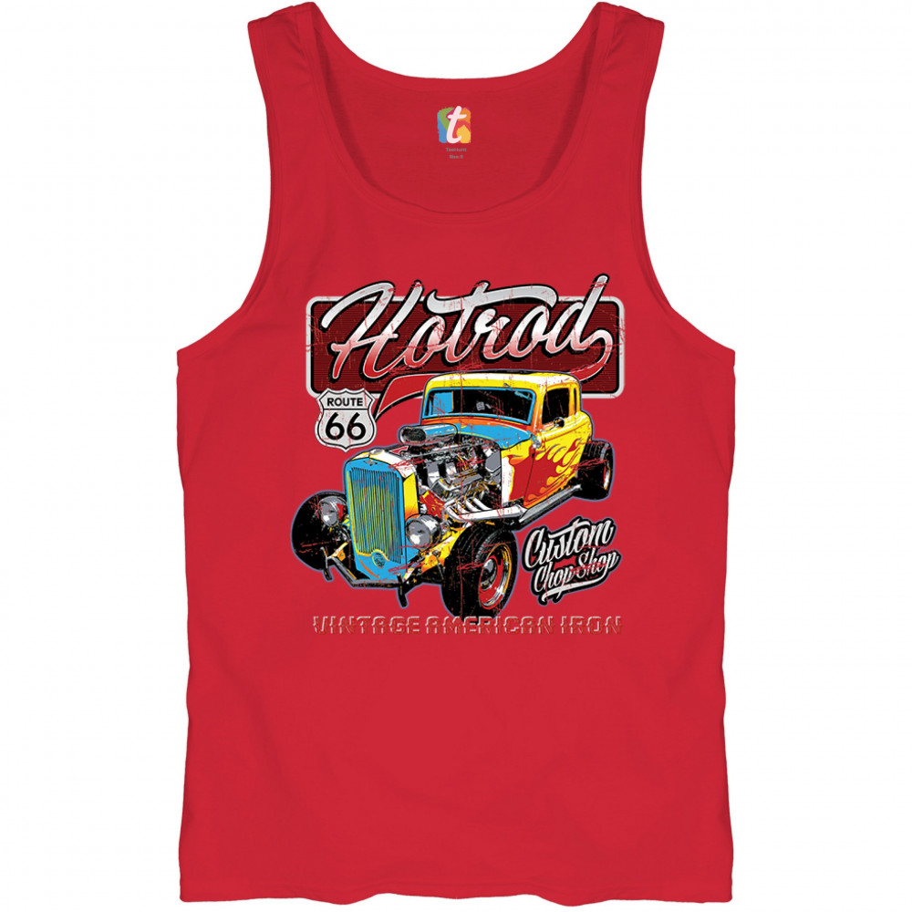 VINTAGE AMERICAN IRON tank top hot rod route 66 retro racing men's top red