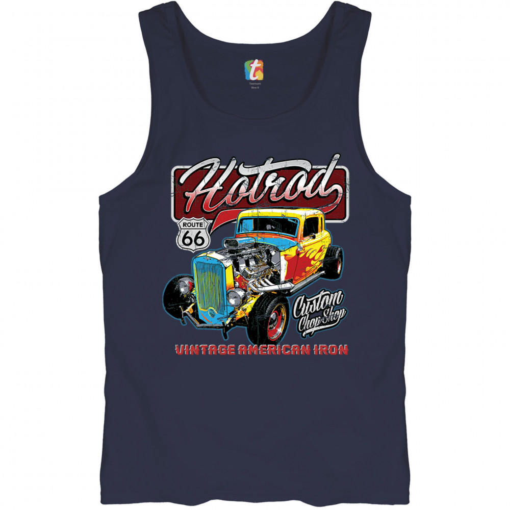 VINTAGE AMERICAN IRON tank top hot rod route 66 retro racing men's top navy blue