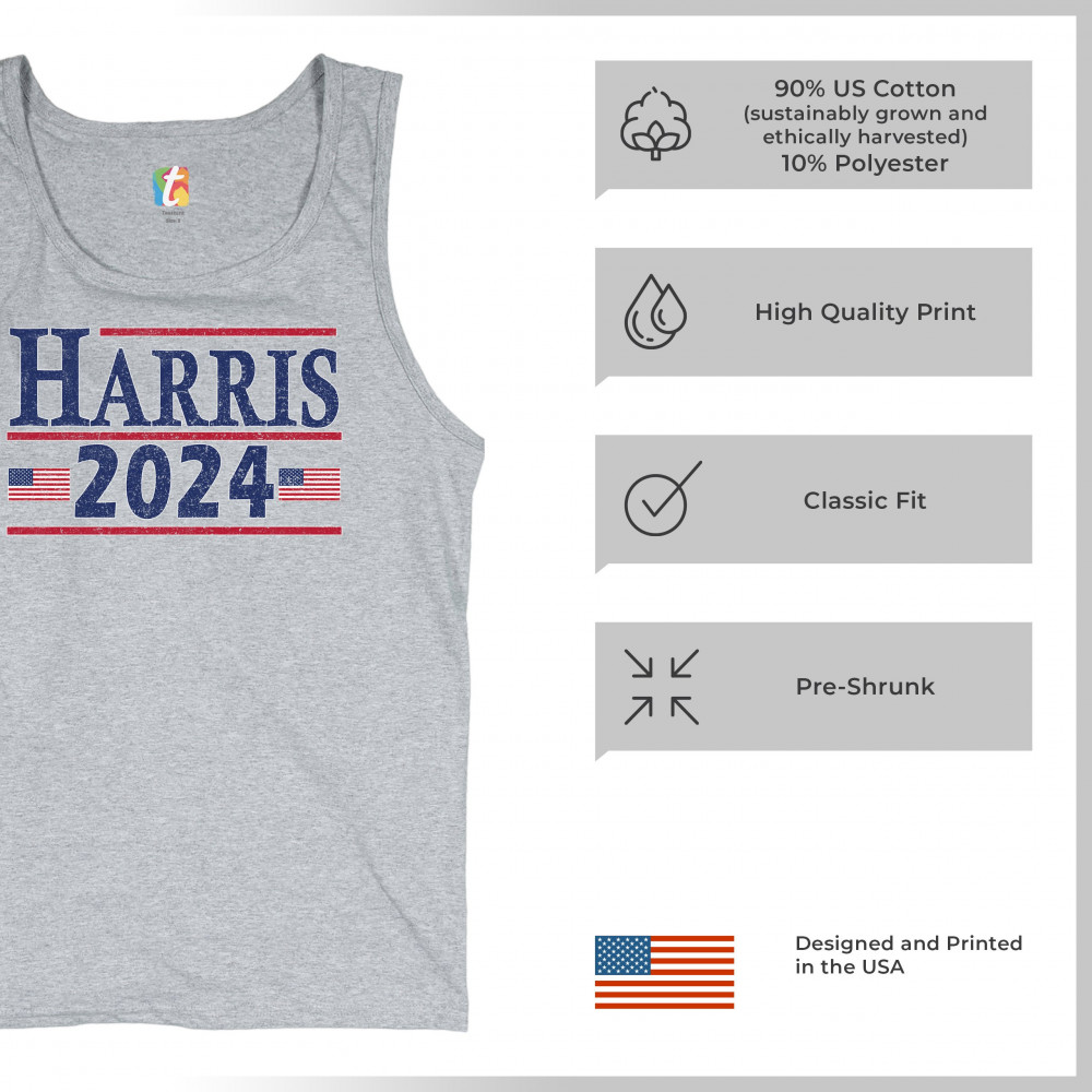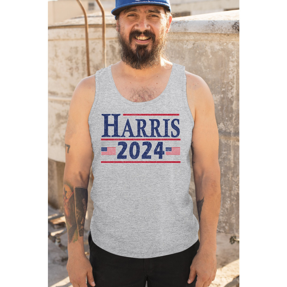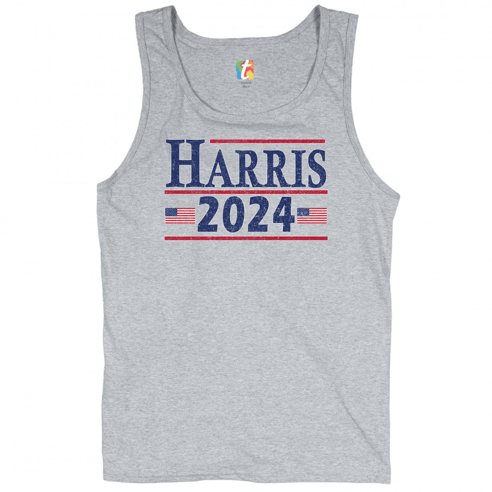 Show your support for Kamala Harris with this bold "Harris 2024" t-shirt, featuring American flags. Perfect for rallies and events. Join the movement today!