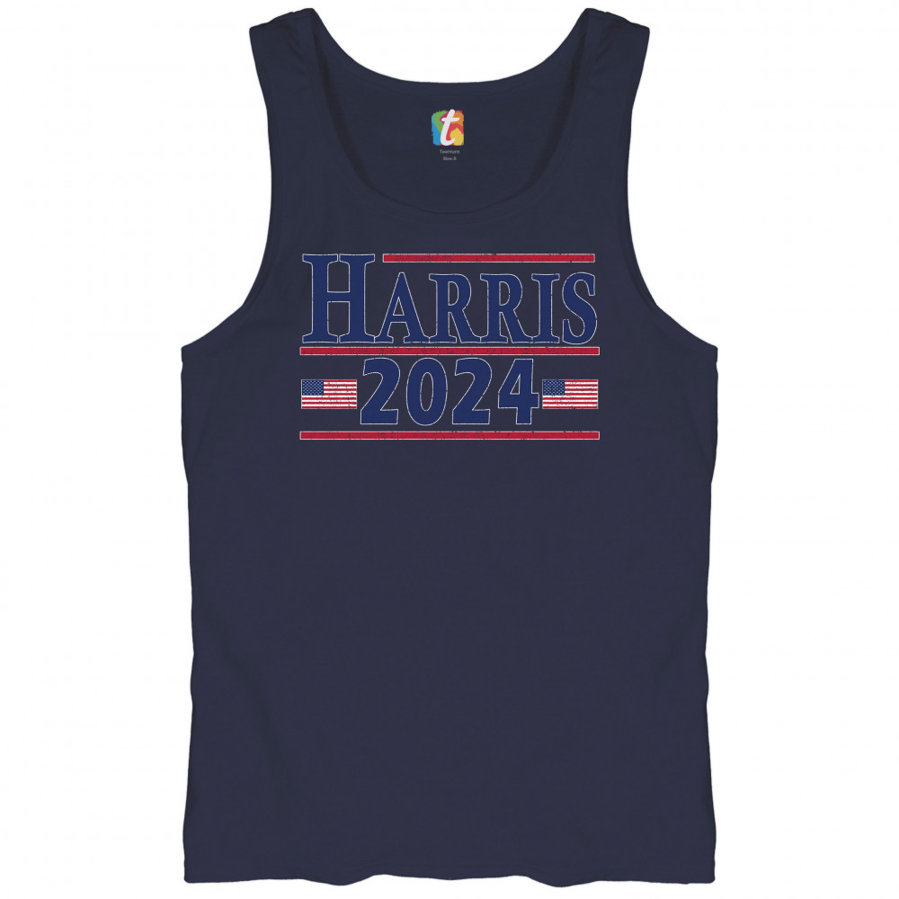 Show your support for Kamala Harris with this bold "Harris 2024" t-shirt, featuring American flags. Perfect for rallies and events. Join the movement today!
