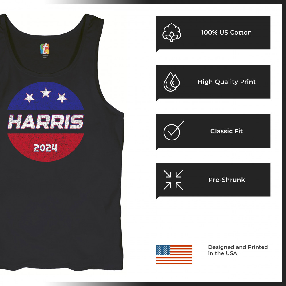 Embrace your political stance with this Kamala Harris 2024 design, crafted for supporters of the Democratic party and those who believe in a brighter, inclusive future. The design features the American flag and bold lettering, making it a perfect choice for rallies, political events, or casual wear. It underscores the historic significance of electing the first female president and represents a broad coalition of black Americans, Hispanic Americans, LGBTQ, and other minority groups. Stand out and show your unwavering support for Kamala Harris and her vision for America.