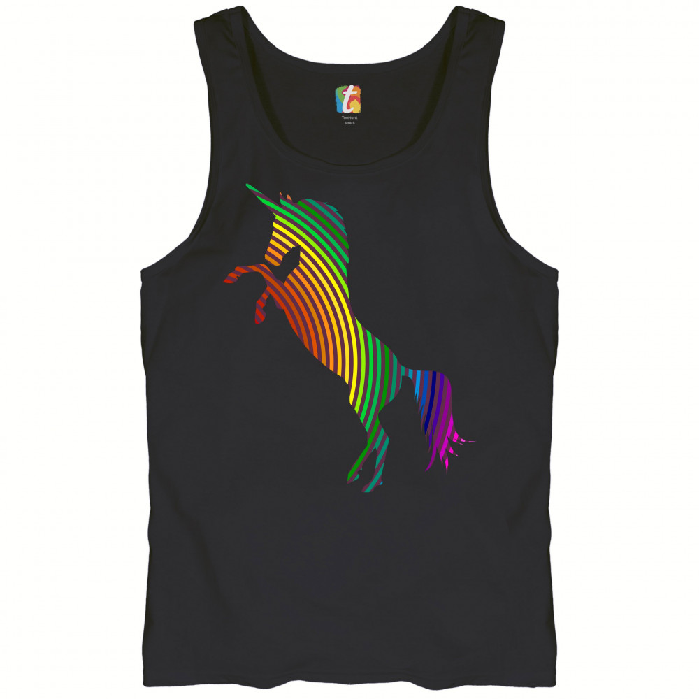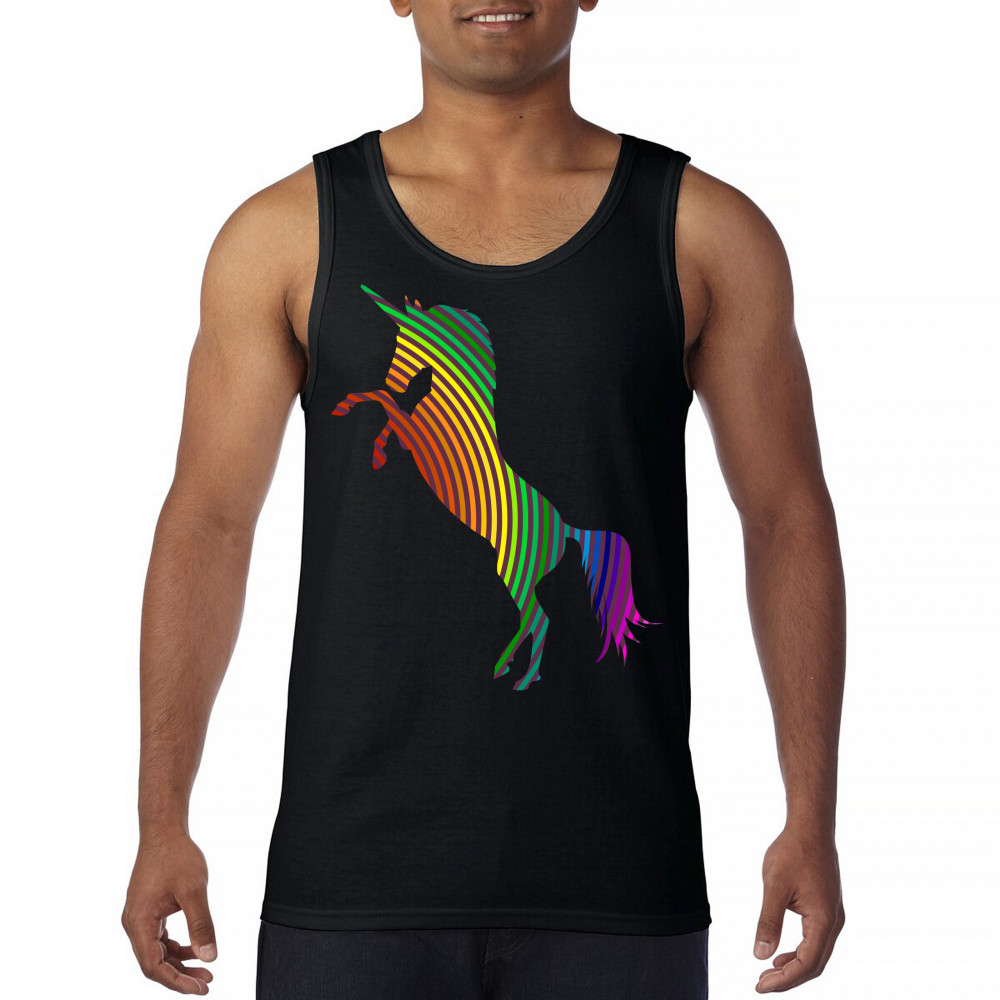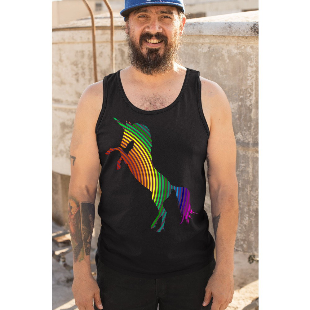 VIVID RAINBOW-STRIPE REARING tank top lgbtq+ queer gay pride men's top black
