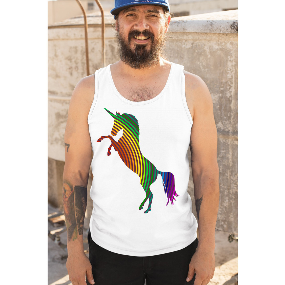 VIVID RAINBOW-STRIPE REARING tank top lgbtq+ queer gay pride men's top white