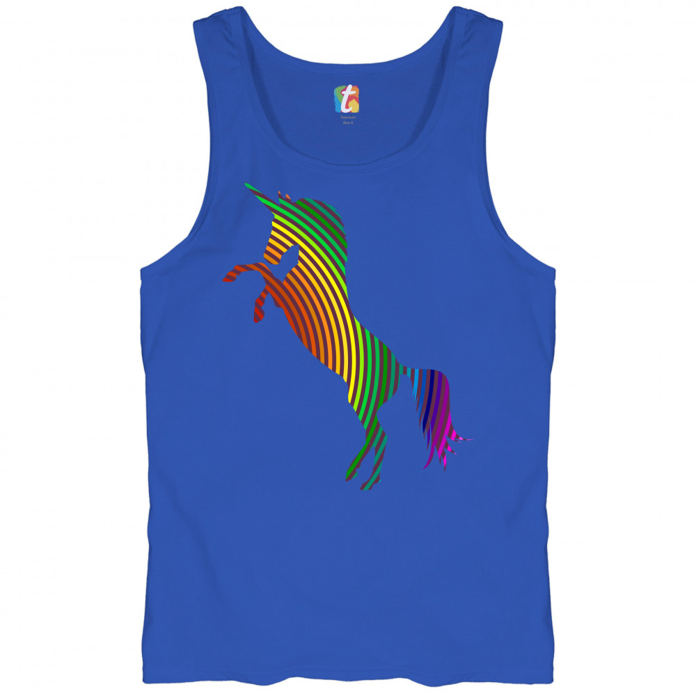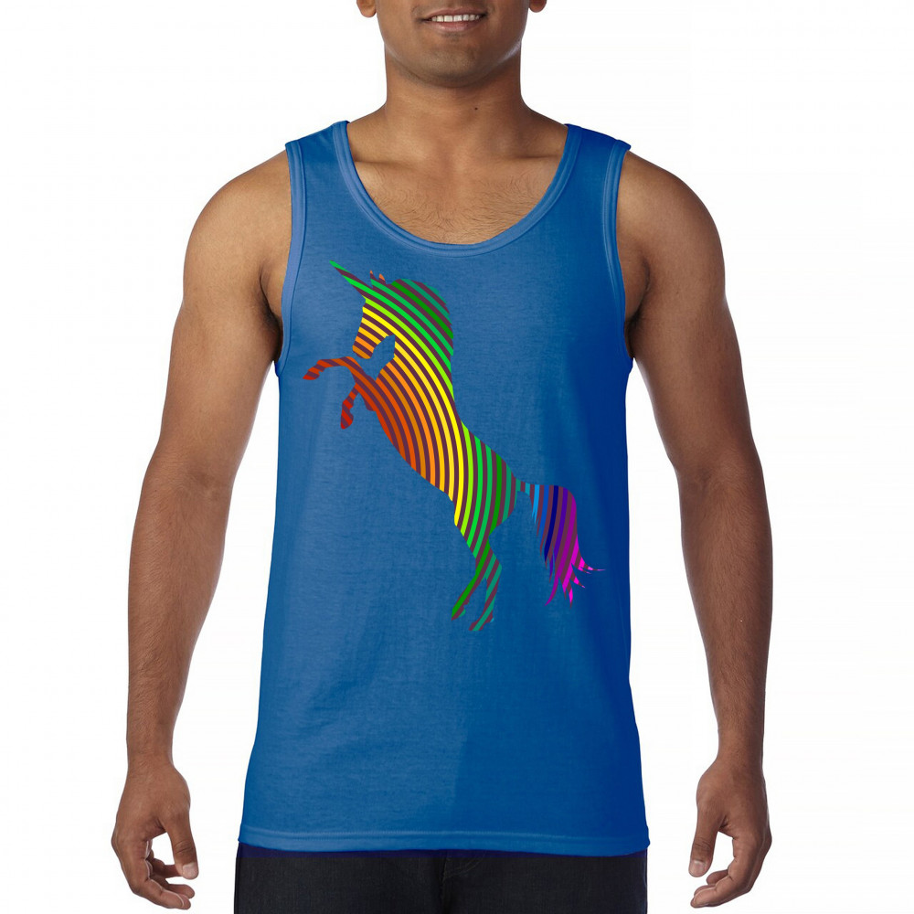 VIVID RAINBOW-STRIPE REARING tank top lgbtq+ queer gay pride men's top royal blue