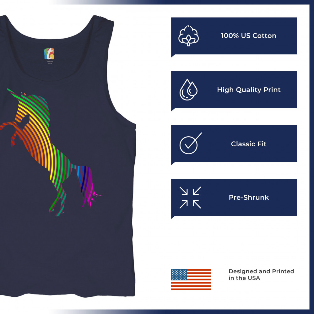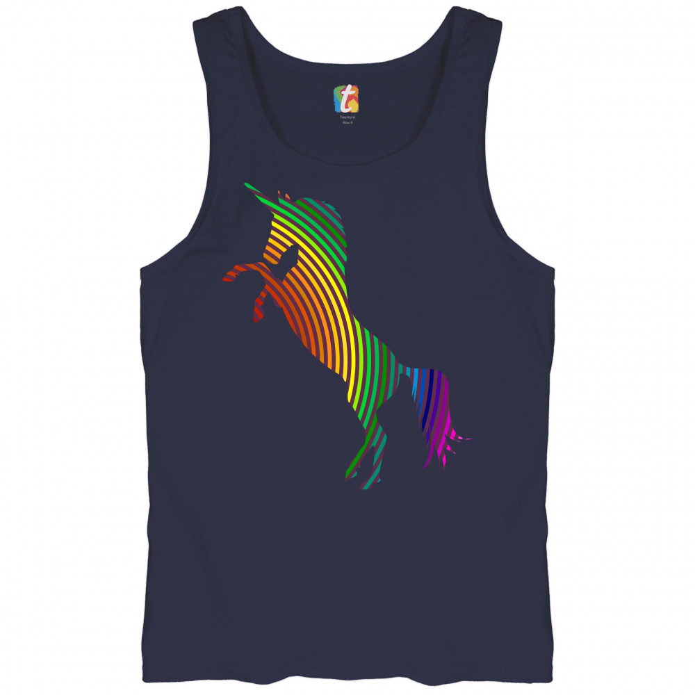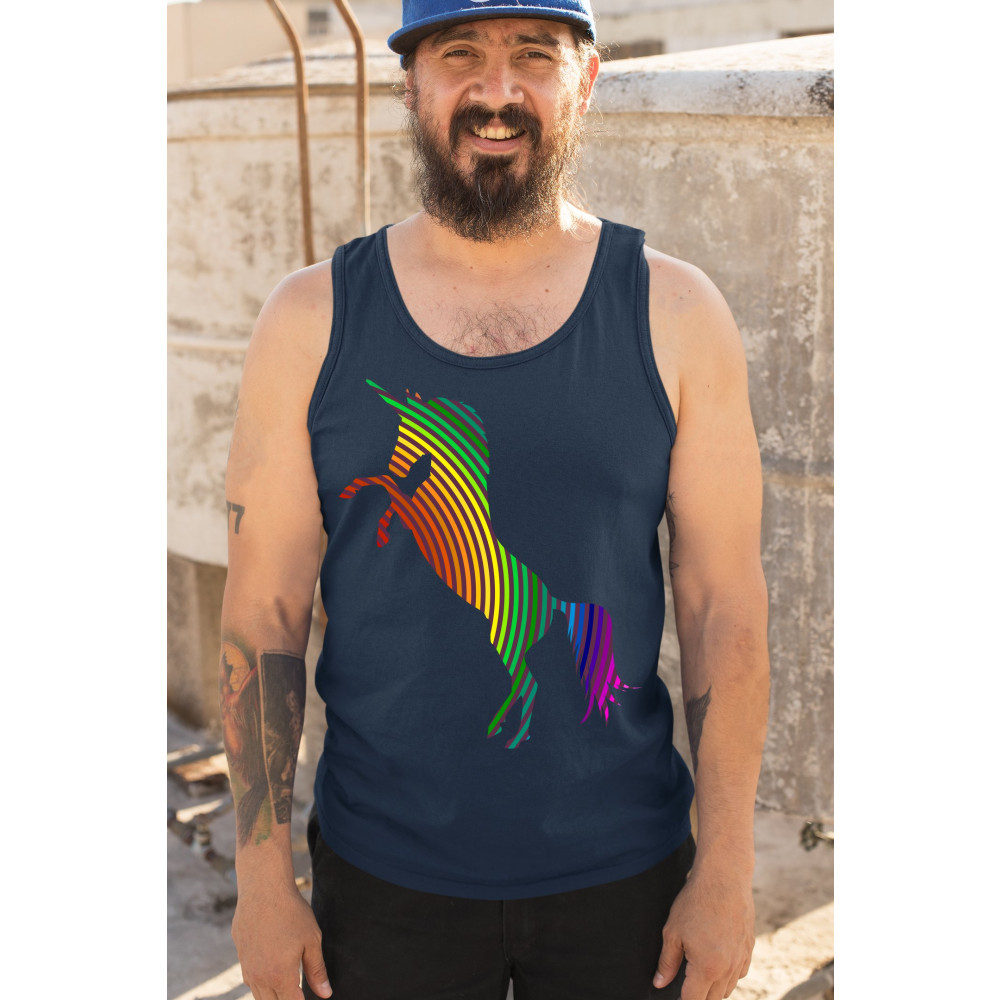 VIVID RAINBOW-STRIPE REARING tank top lgbtq+ queer gay pride men's top navy blue