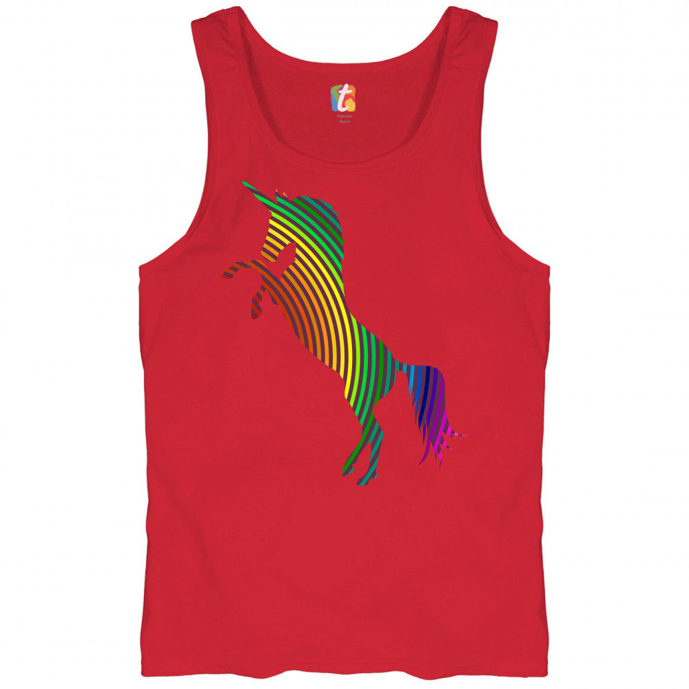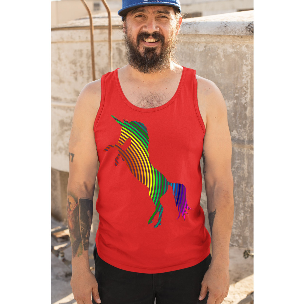 VIVID RAINBOW-STRIPE REARING tank top lgbtq+ queer gay pride men's top red