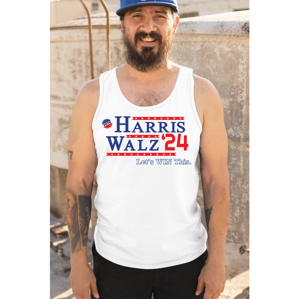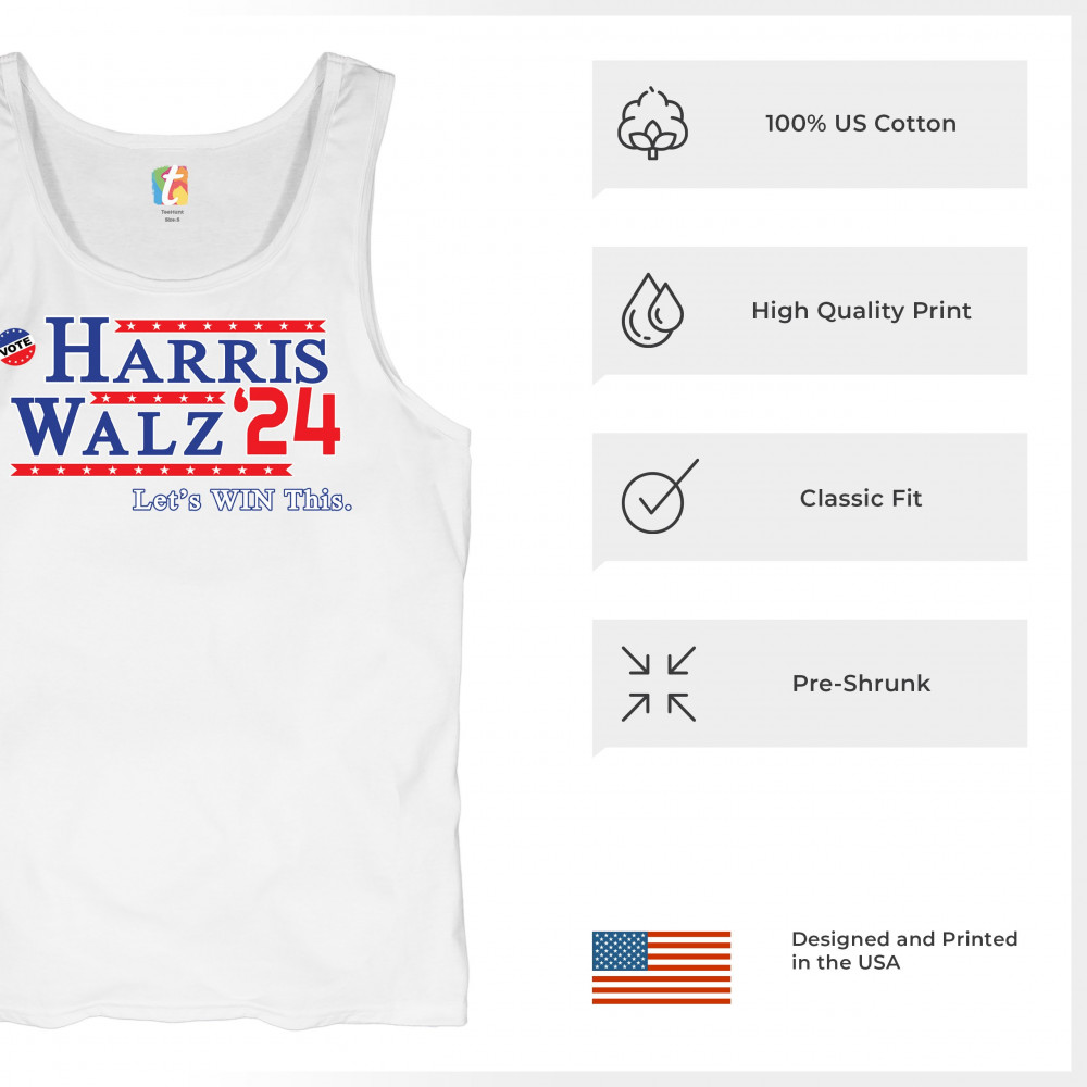 Express your support for Kamala Harris and Tim Walz in the 2024 election with this dynamic and patriotic design. Perfect for rally participants, dedicated supporters, and advocates of liberal values, this design captures the essence of the campaign. Highlighting America First, women's rights, and LGBTQ+ equality, it symbolizes the fight for victory and justice. Trust in government and join the rebelution against conservative agendas. Stand with Kamala and Walz for a brighter future. Let's win this together in 2024. Let's Win This.