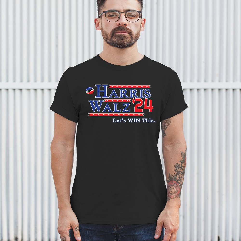 Express your support for Kamala Harris and Tim Walz in the 2024 election with this dynamic and patriotic design. Perfect for rally participants, dedicated supporters, and advocates of liberal values, this design captures the essence of the campaign. Highlighting America First, women's rights, and LGBTQ+ equality, it symbolizes the fight for victory and justice. Trust in government and join the rebelution against conservative agendas. Stand with Kamala and Walz for a brighter future. Let's win this together in 2024. Let's Win This.
