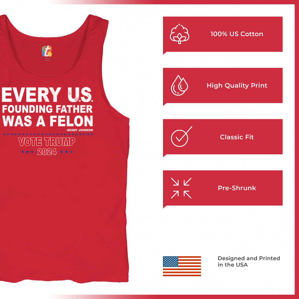 Show your support for Trump 2024 with a bold design quoting "Every U.S. founding father was a felon." Stand against political attacks and support an America-first vision.