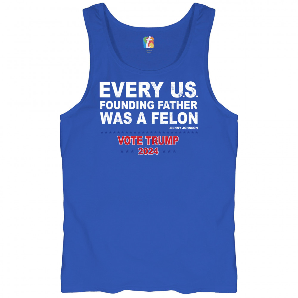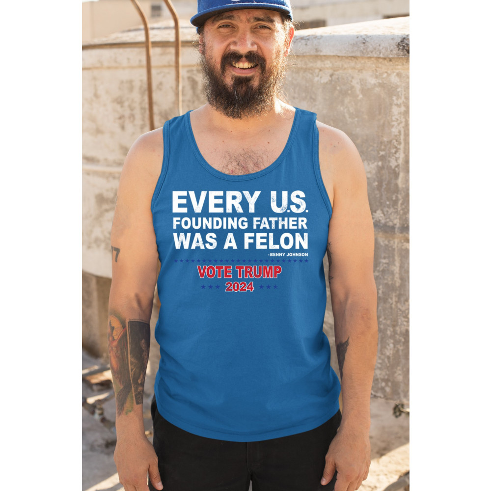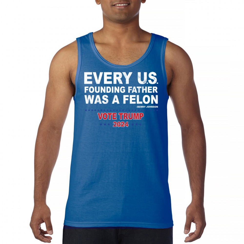 Show your support for Trump 2024 with a bold design quoting "Every U.S. founding father was a felon." Stand against political attacks and support an America-first vision.