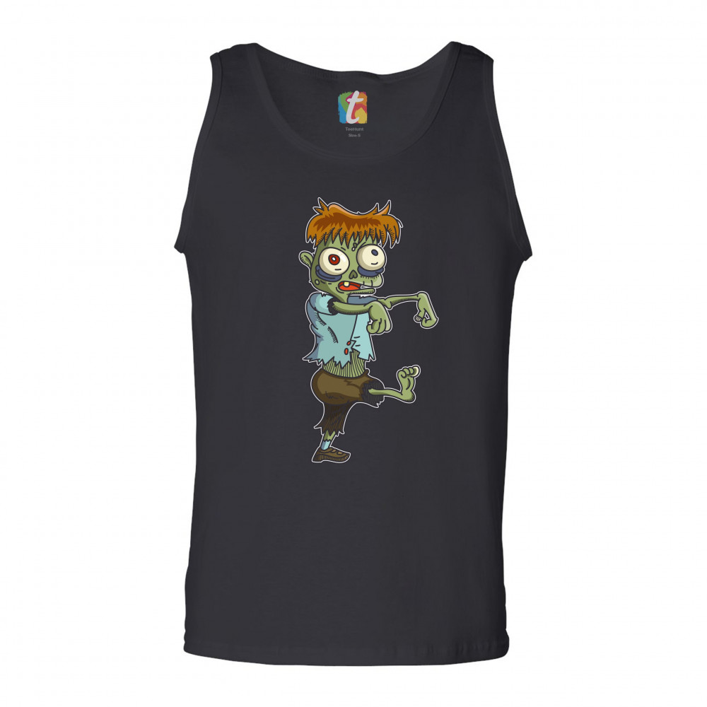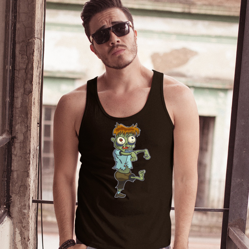 A print featuring a zombie, walking in a stereotypical movie fashion with the arms extended forward. The zombie has messy ginger hair and eyes popping out but he looks rather funny and non-threatening. A great choice for a person who is into horror movies